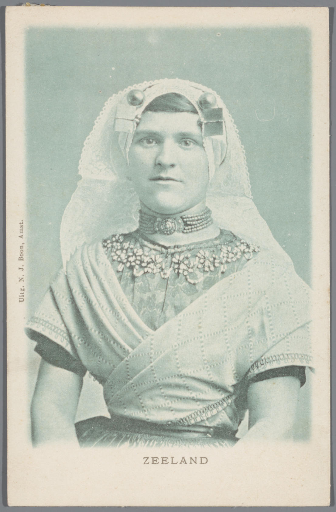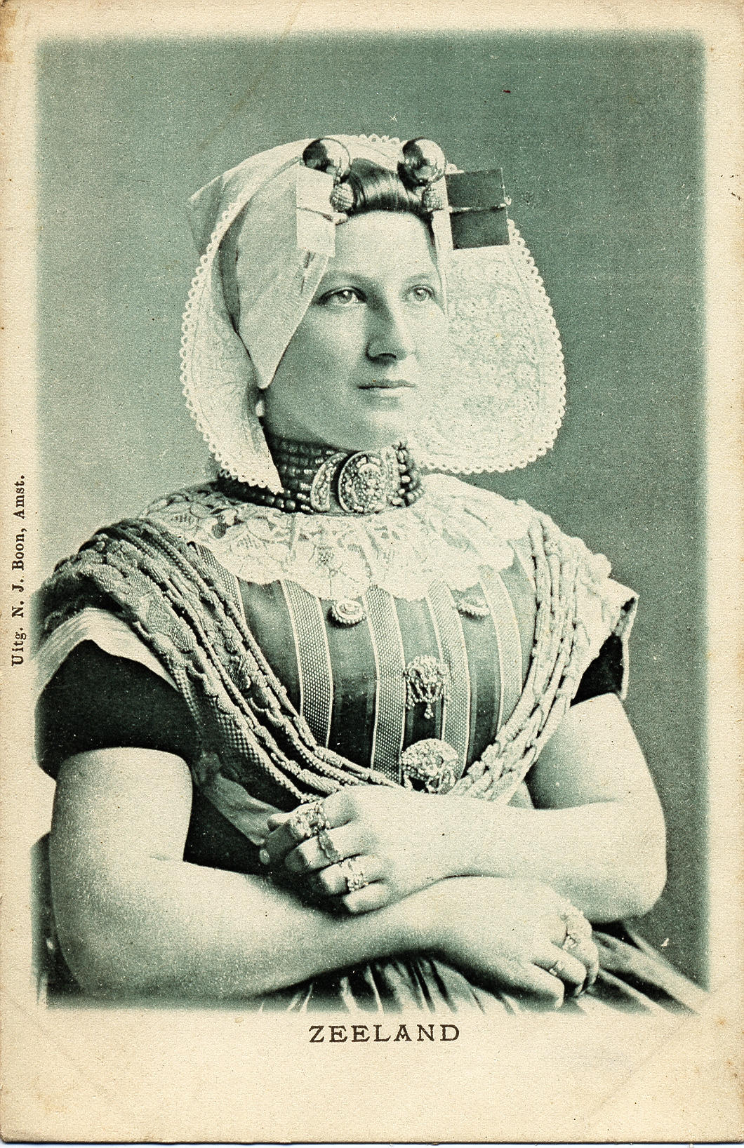 Vrouw in Walcherse streekdracht, met kaphoed