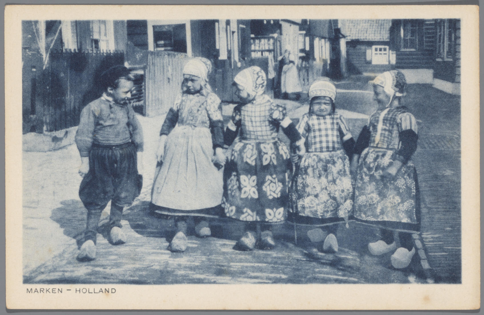 Meisje en vier jongens in Marker dracht