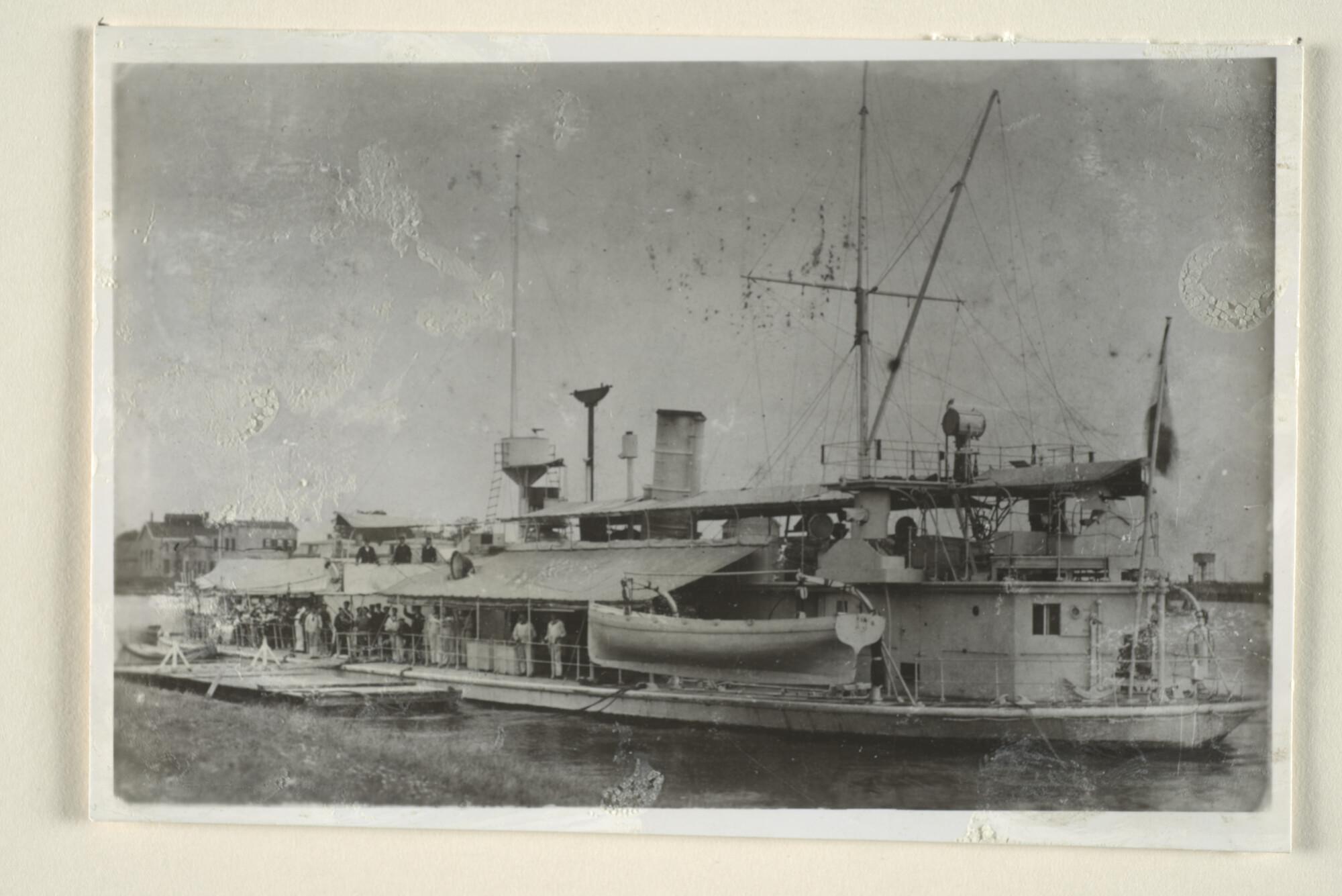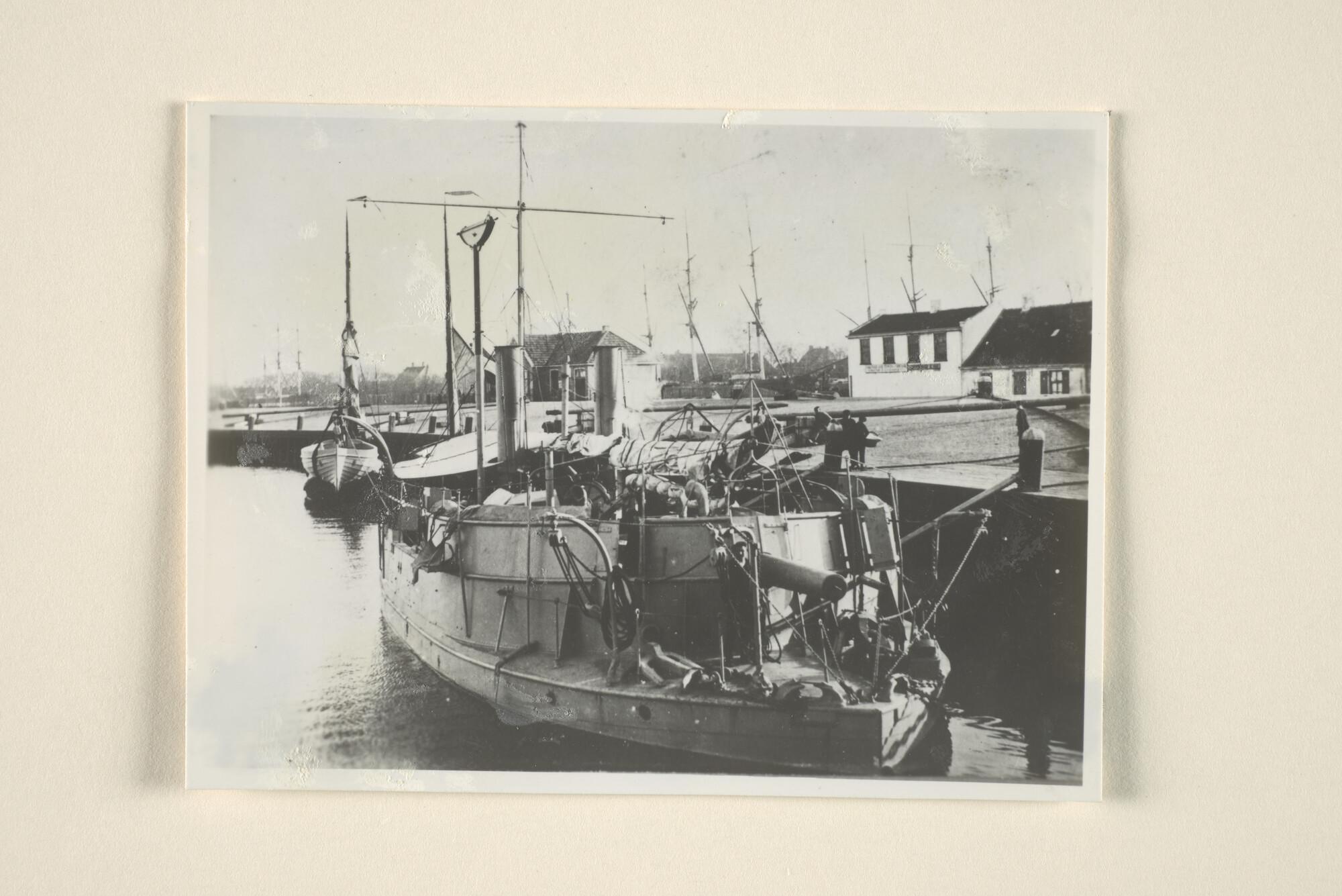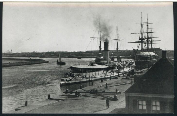 De stoomkanonneerboot Hr.Ms. Brak in een haven