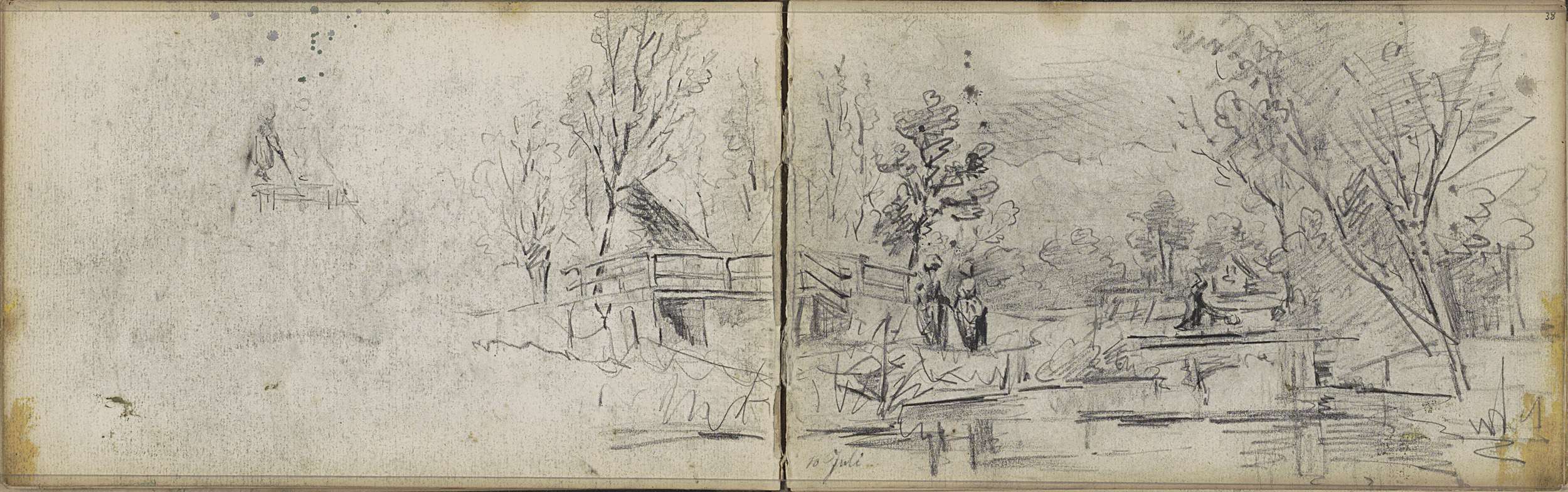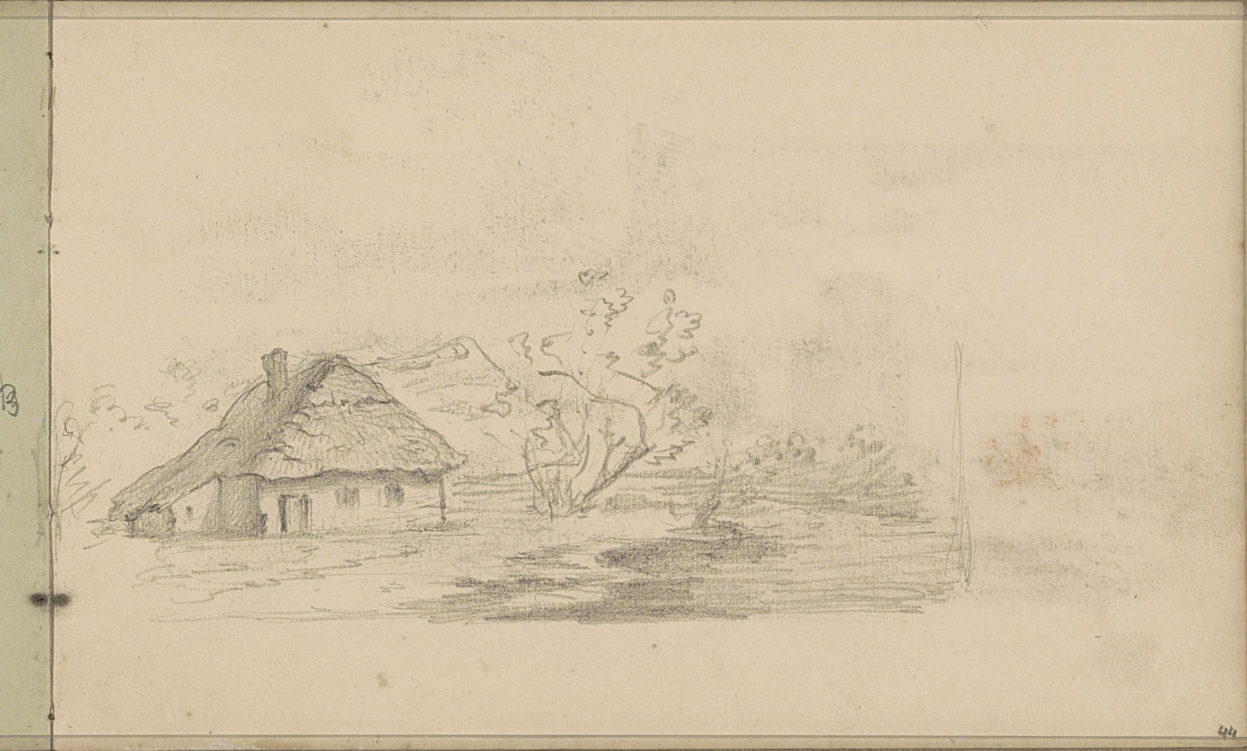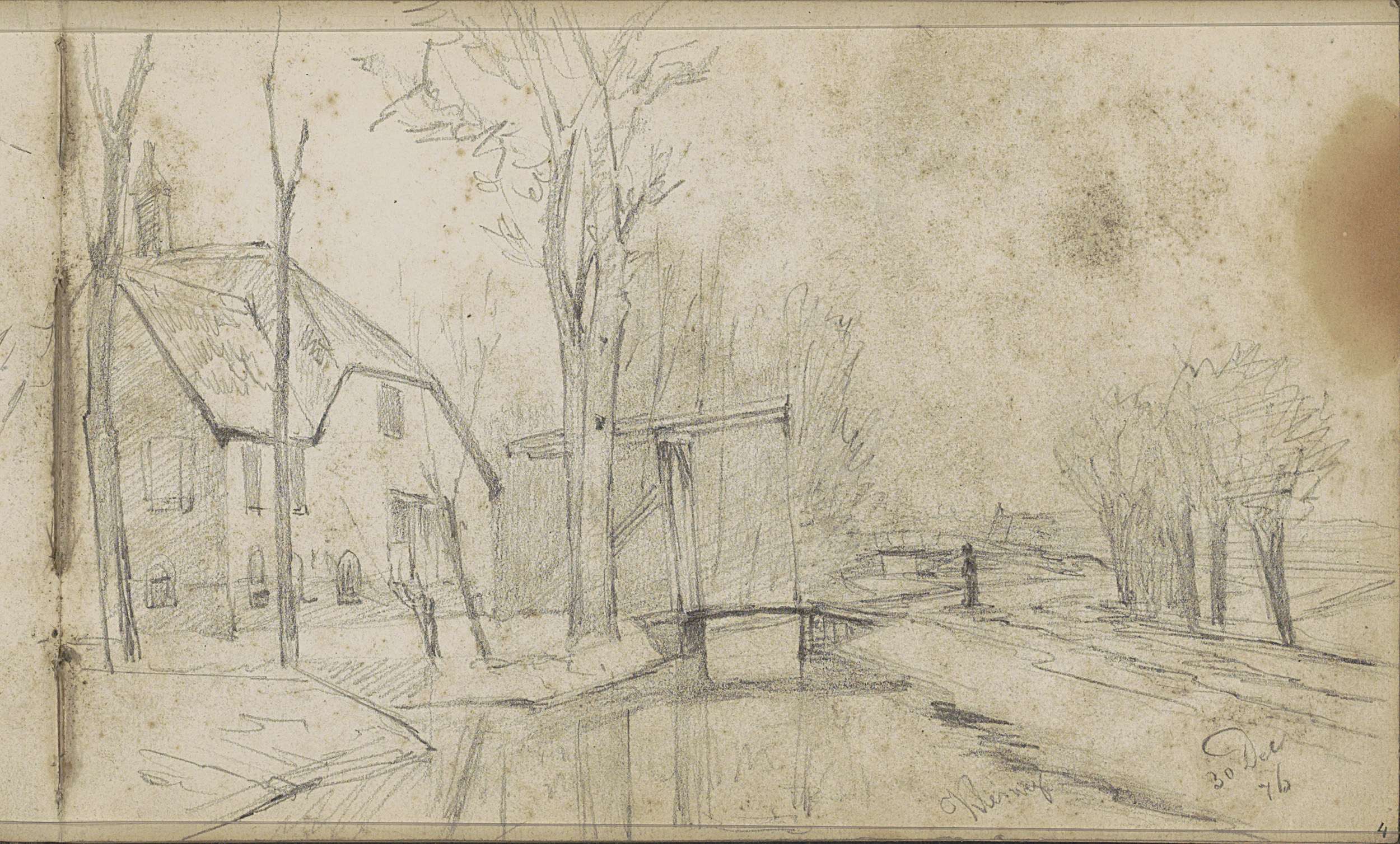 Boerderij langs een vaart, een huis en figuren met e...