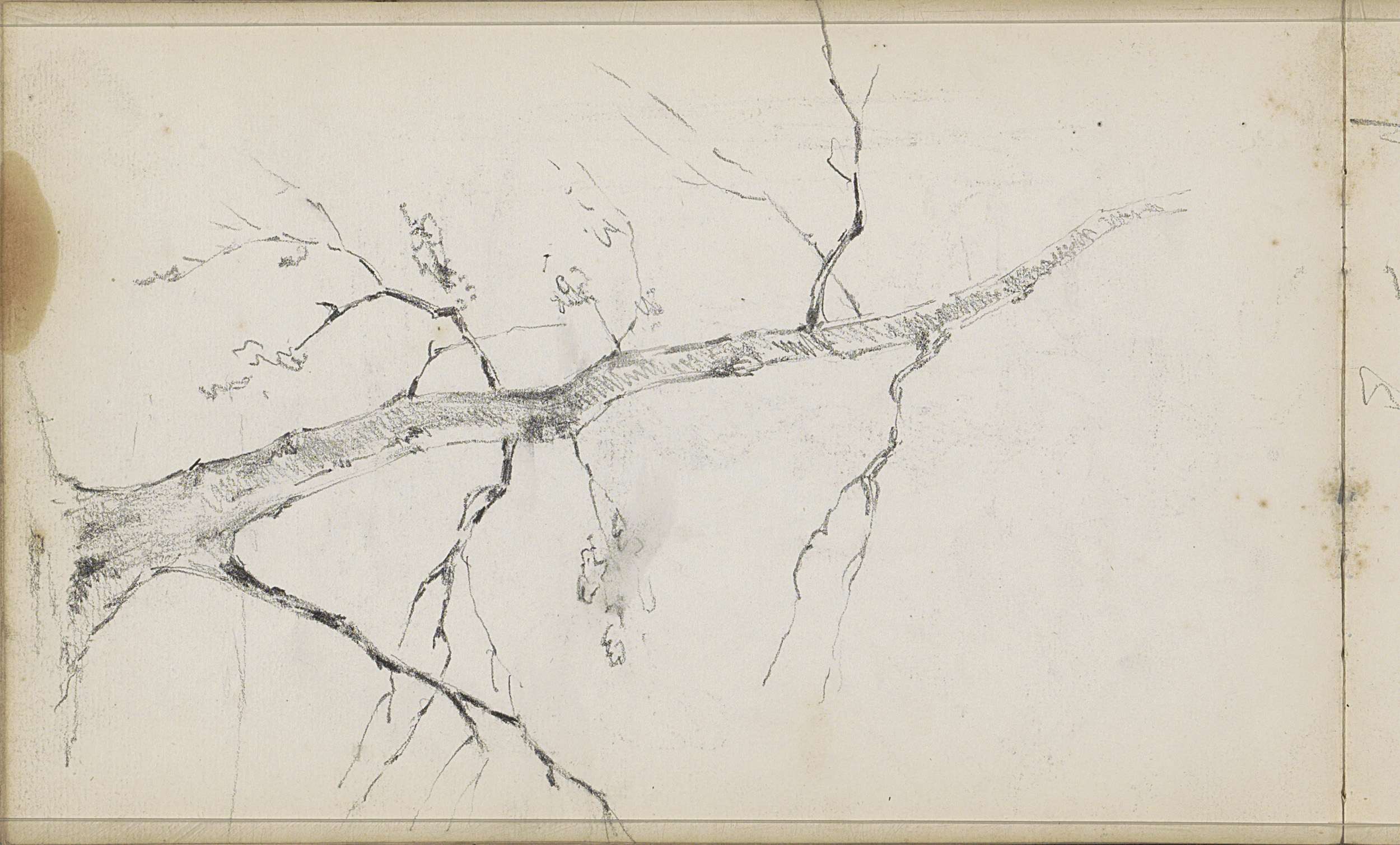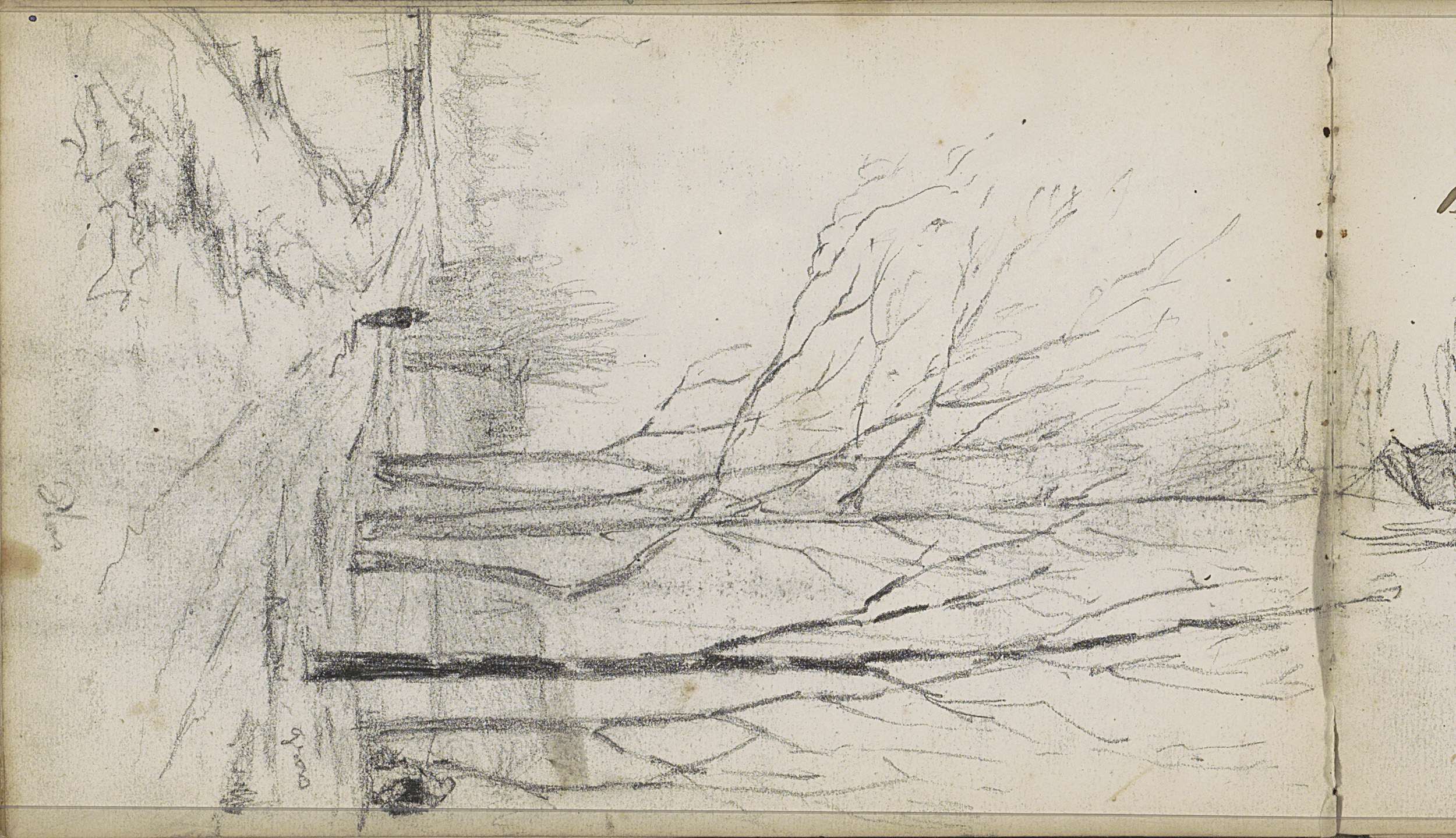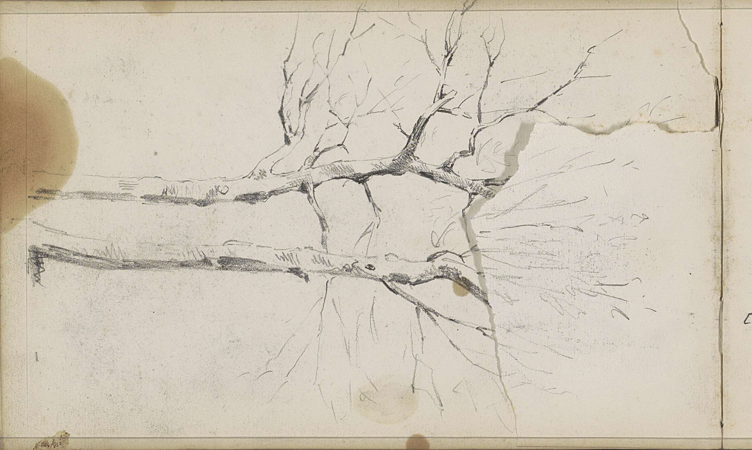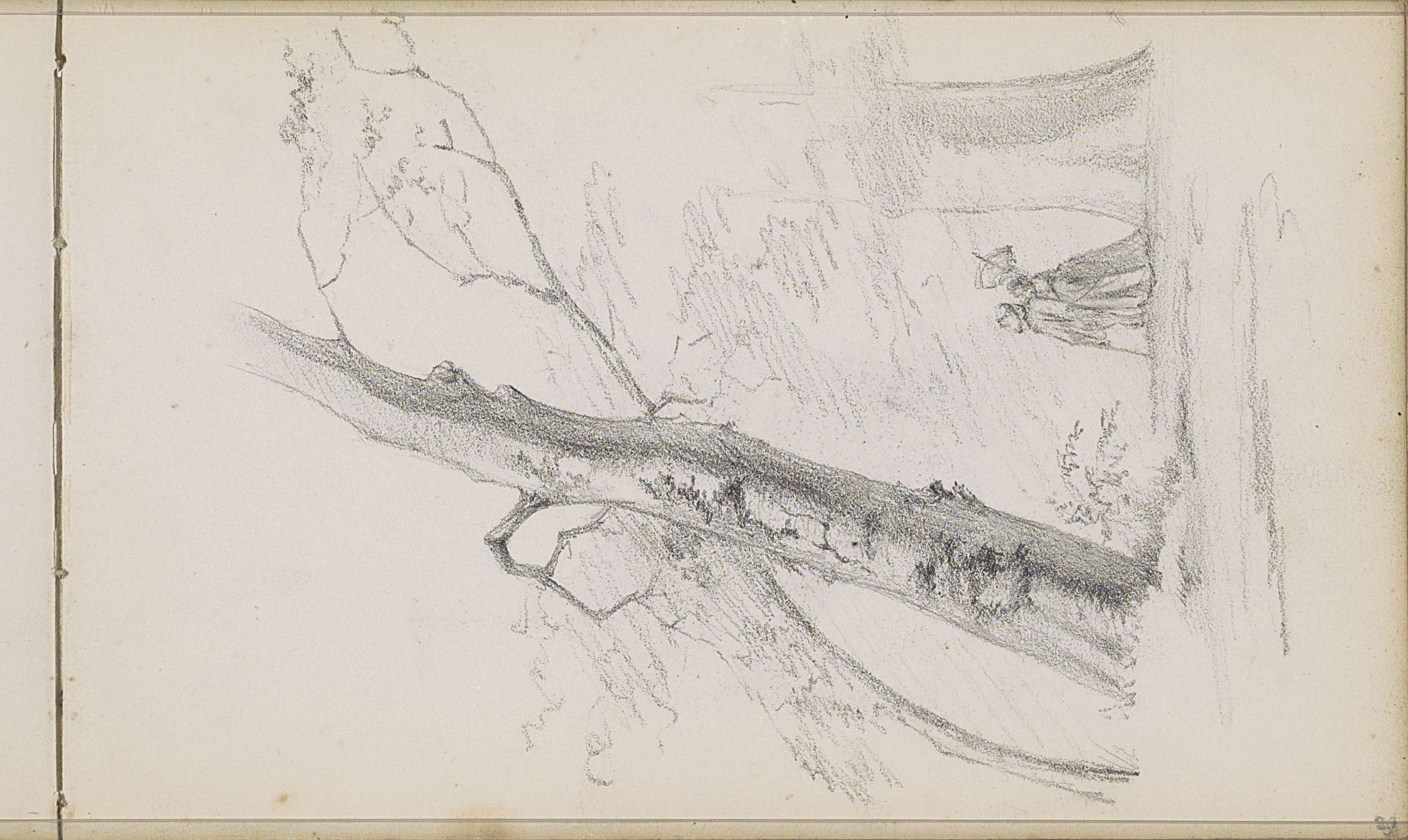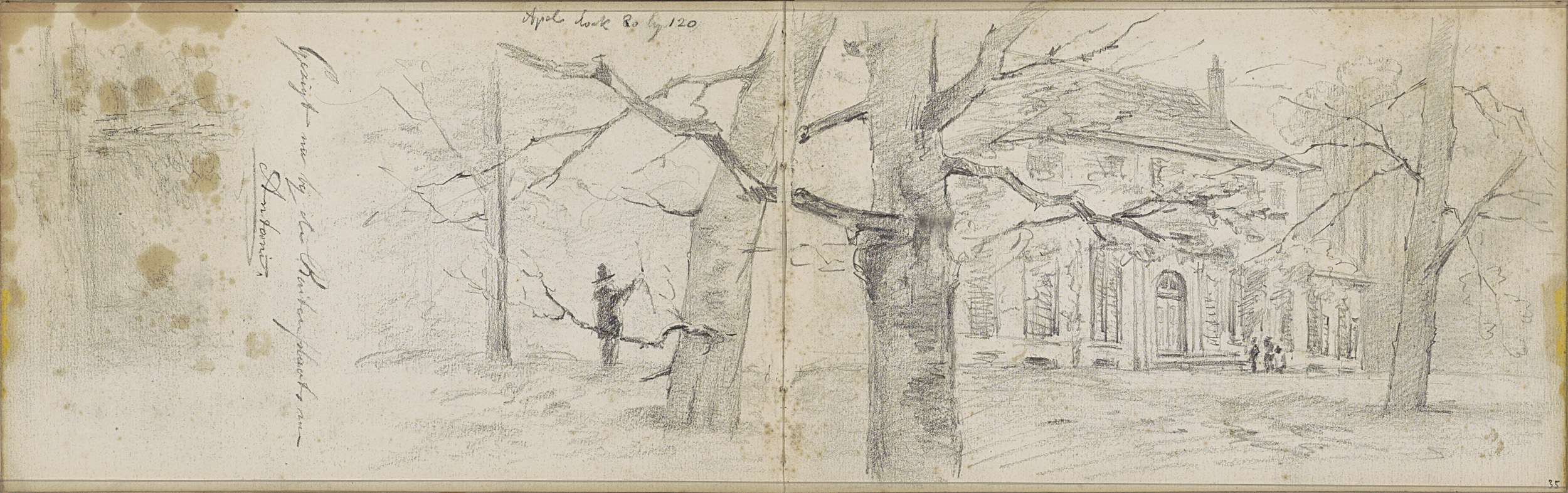 Studieblad met een boom en zittende naakte figuren
