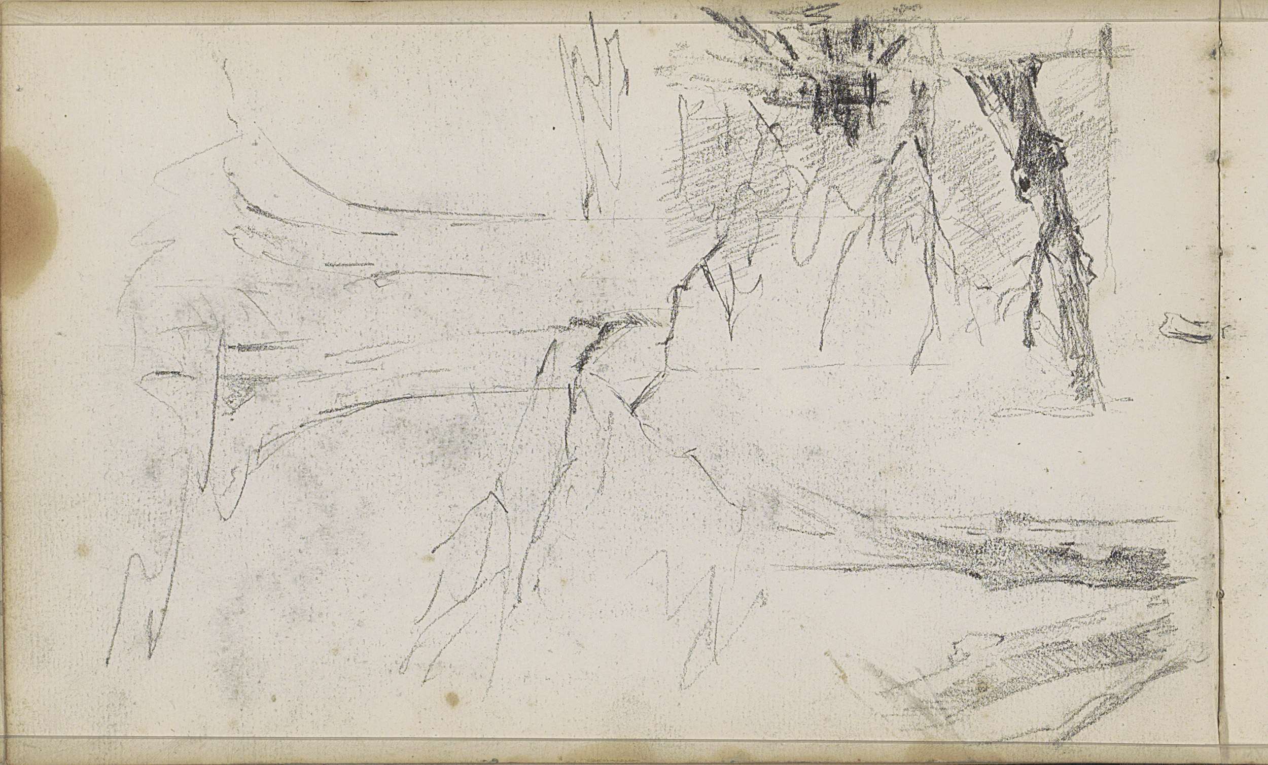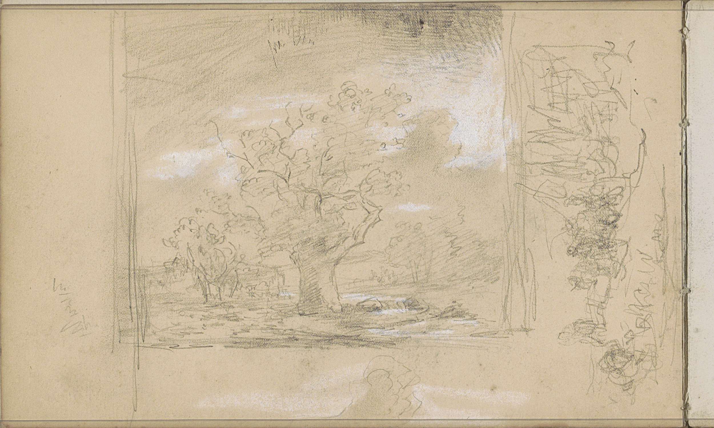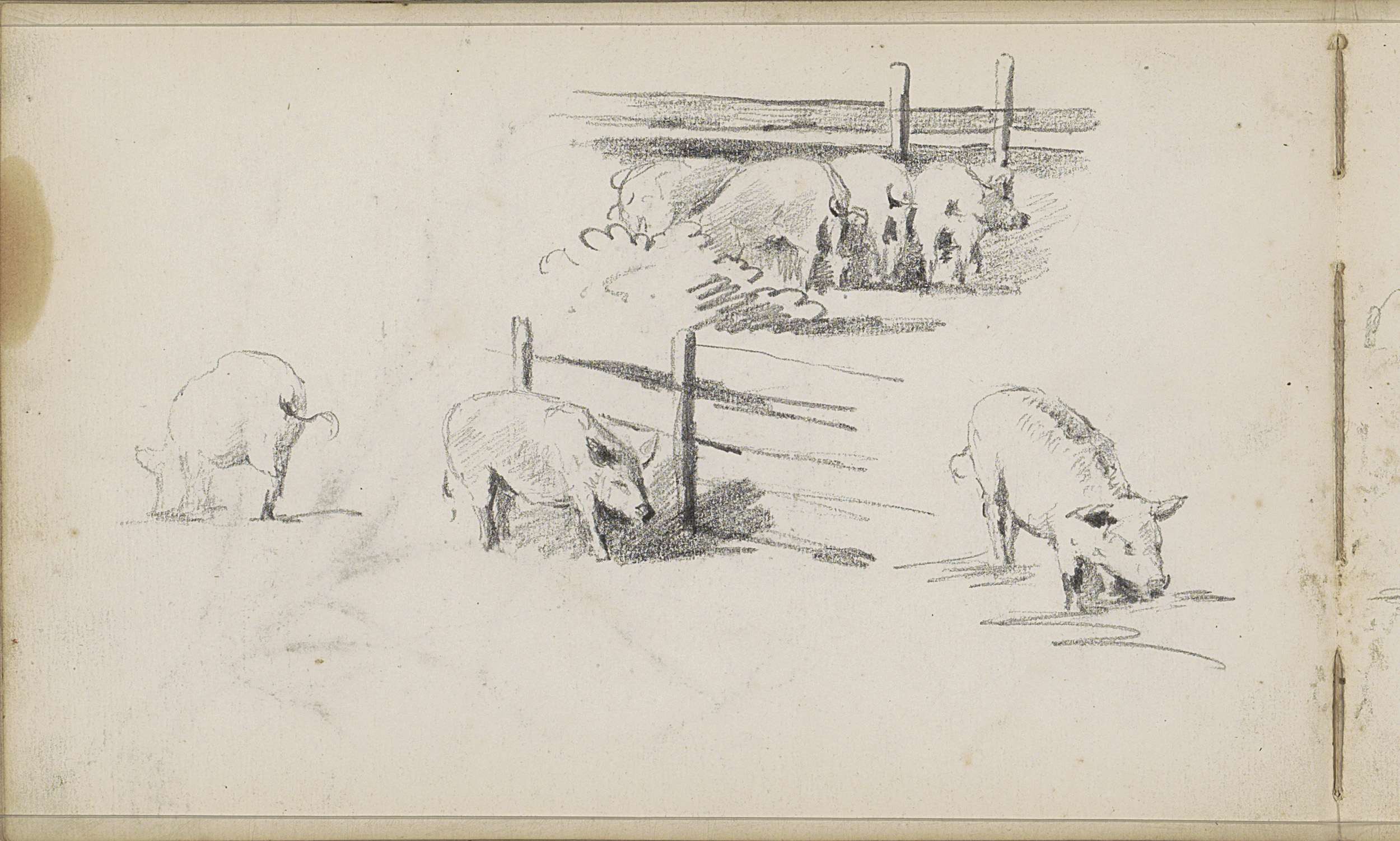 Studieblad, onder andere met grazende koeien en figuren