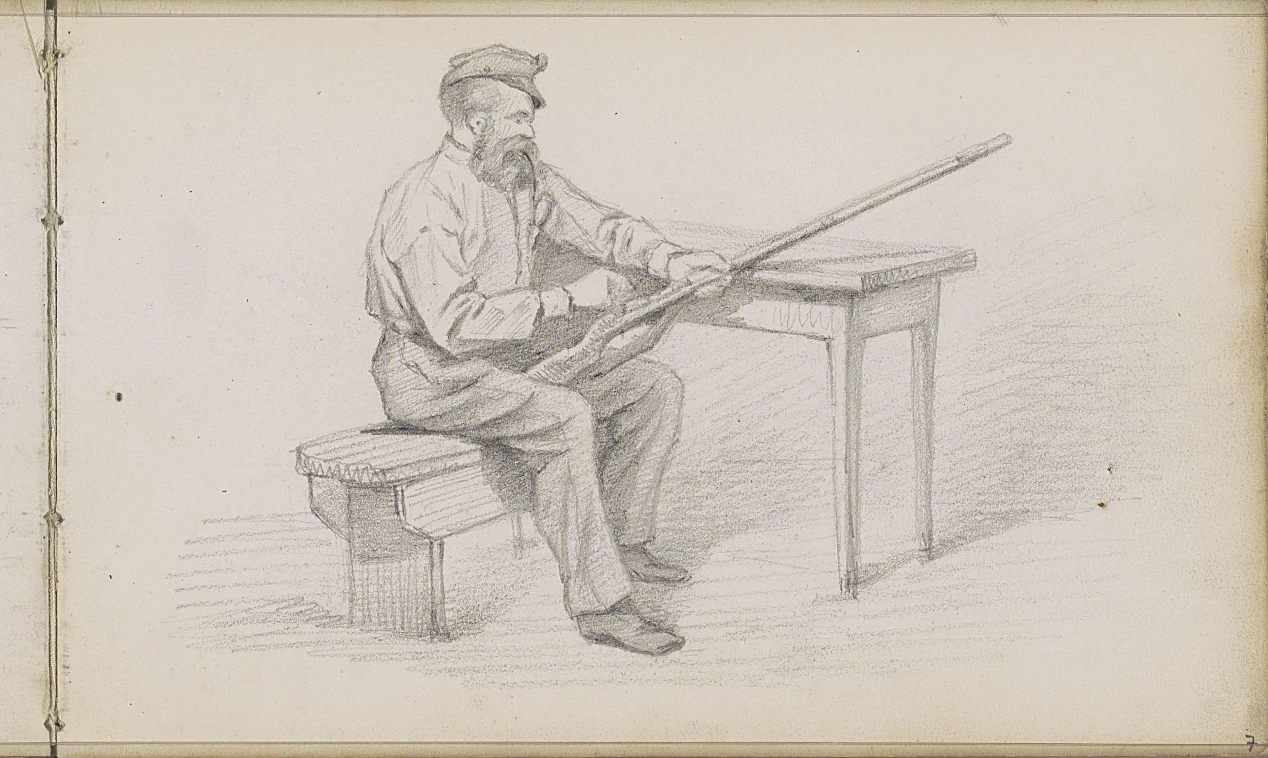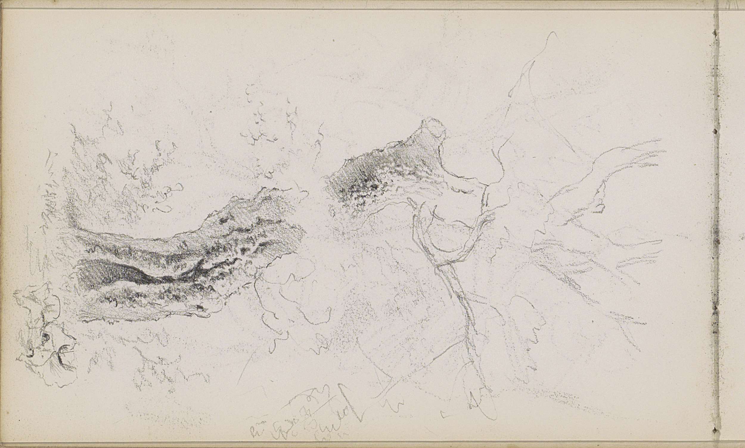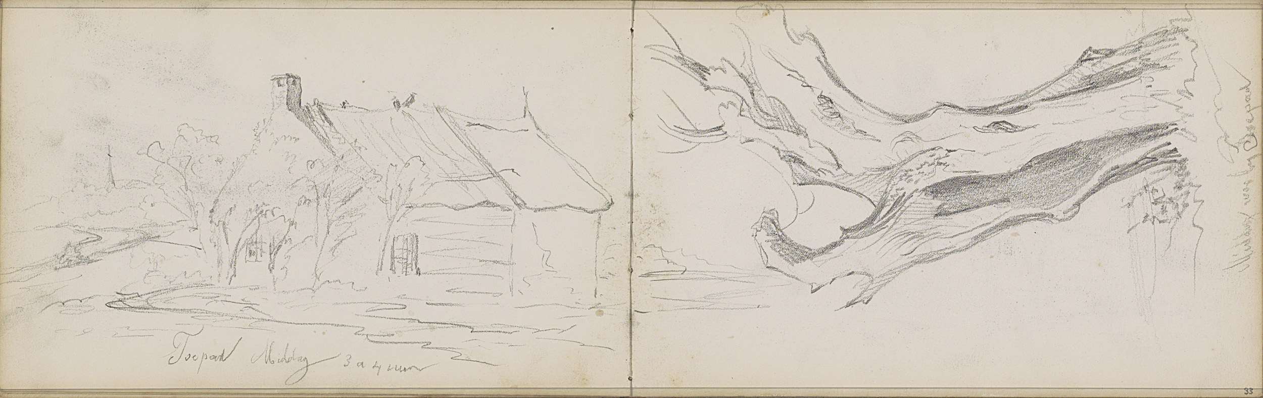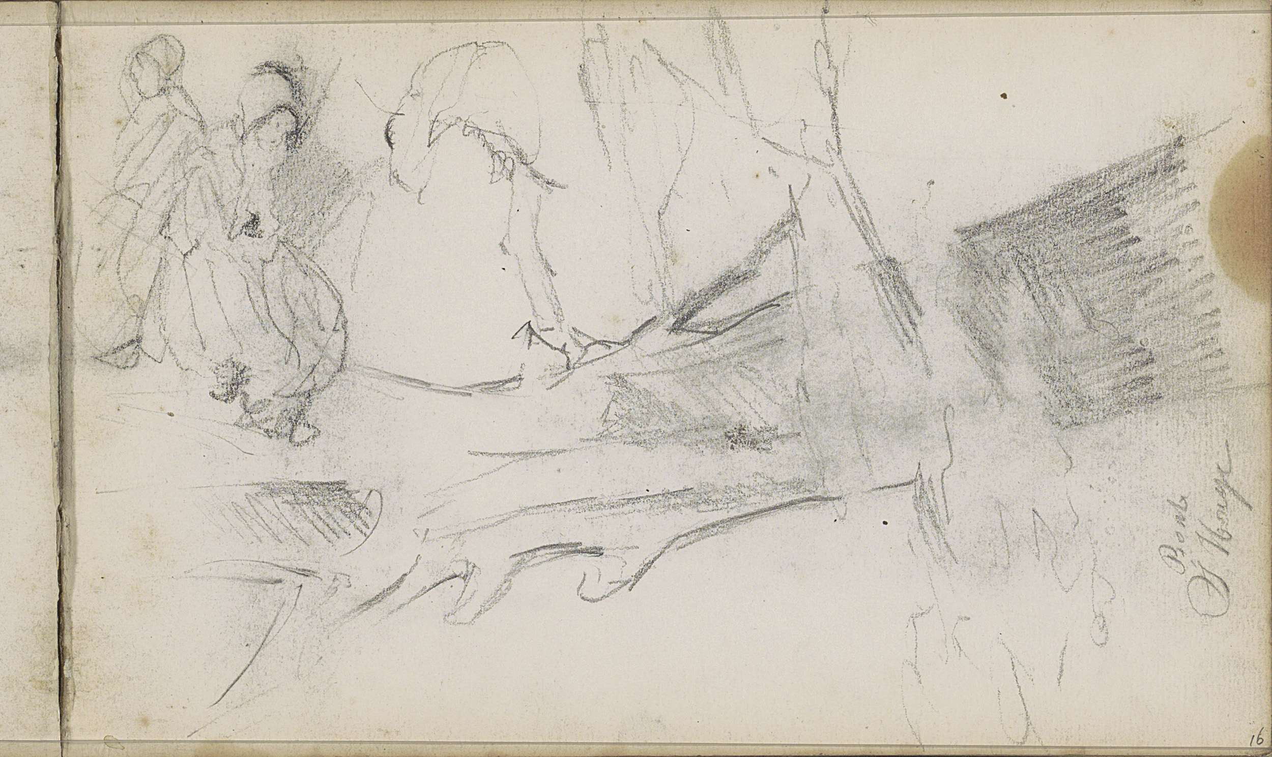 Studieblad, onder andere met grazende koeien en figuren