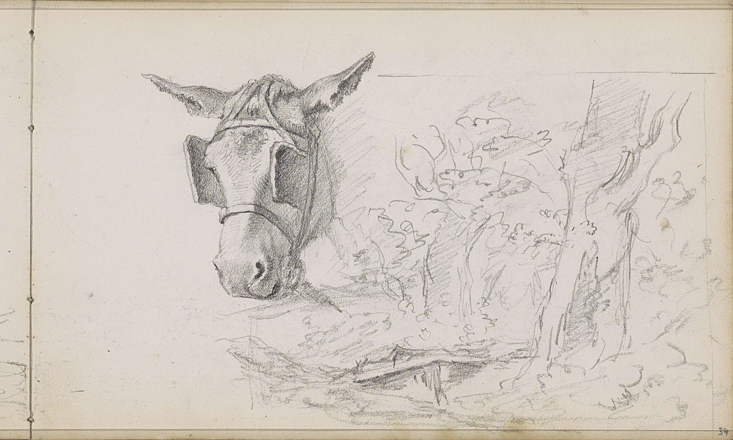 Kop van een ezel en een landschap