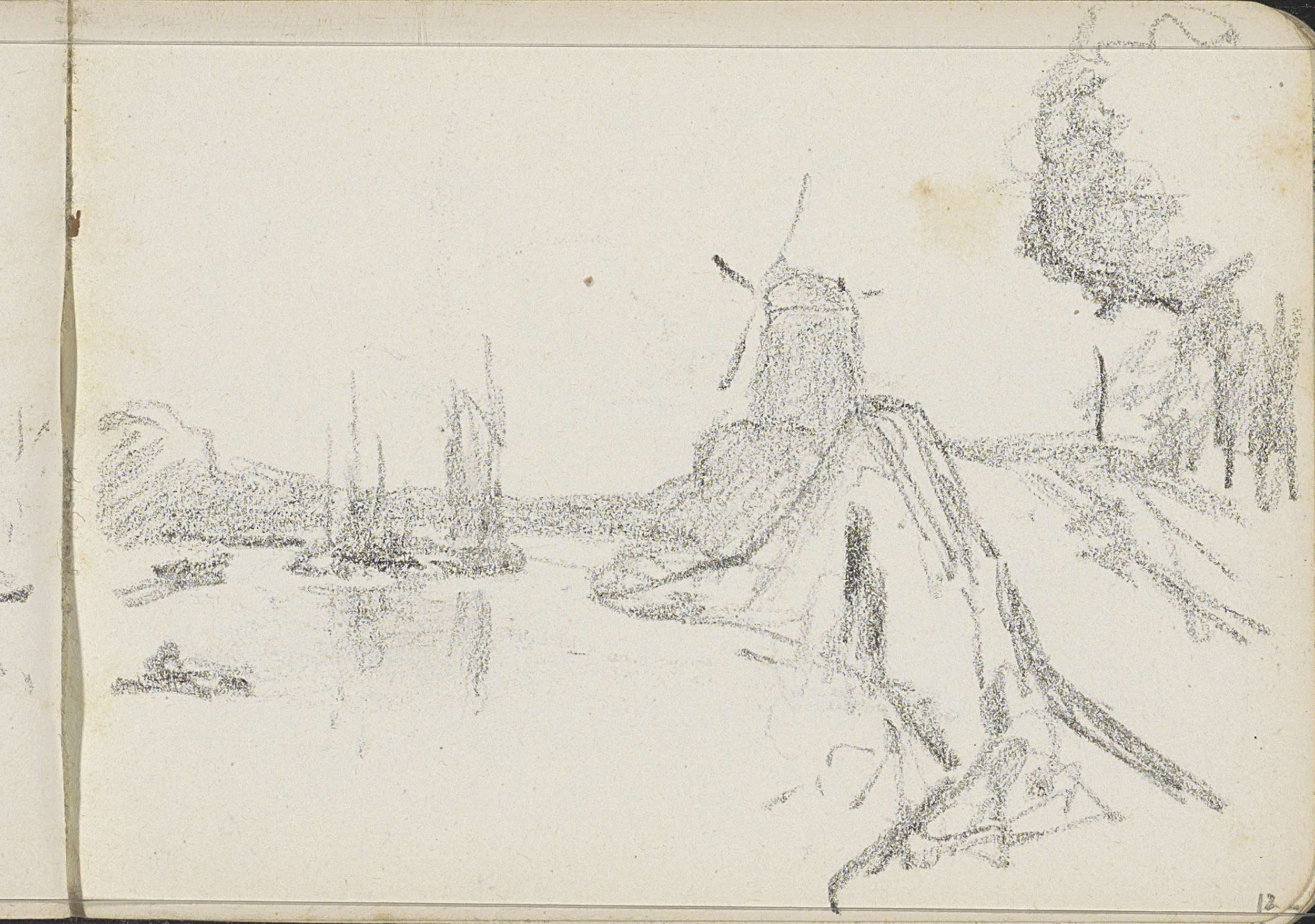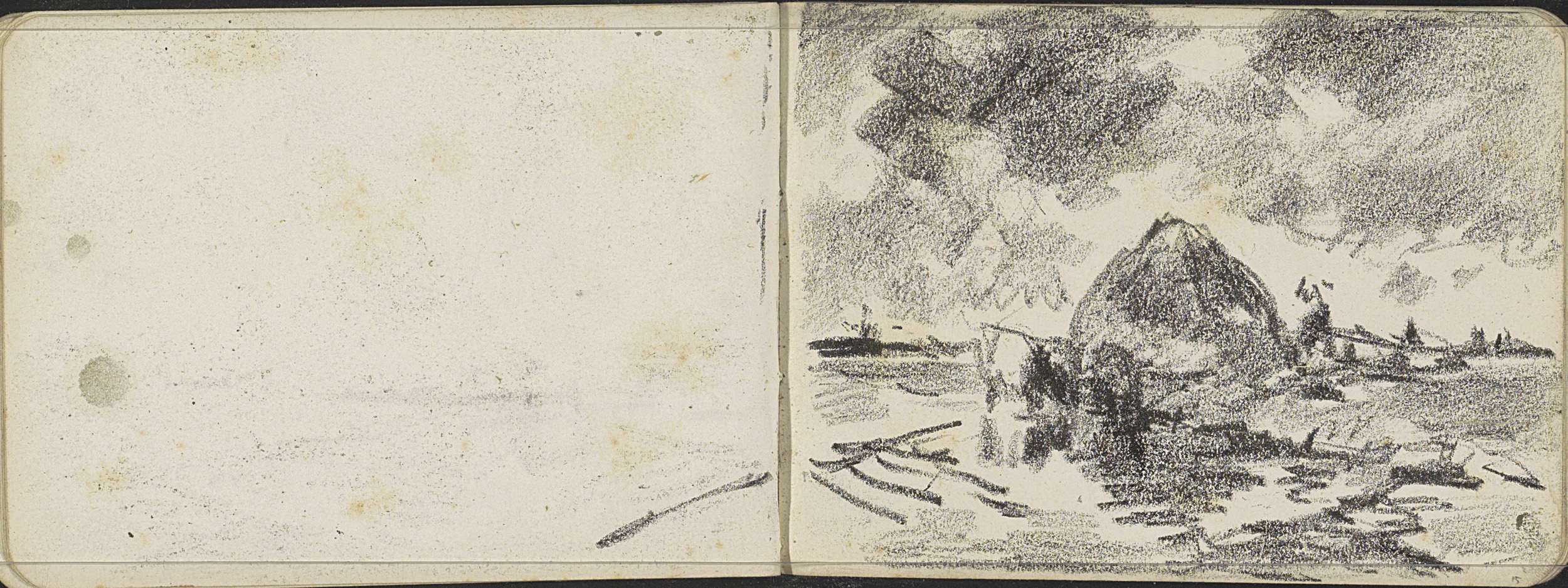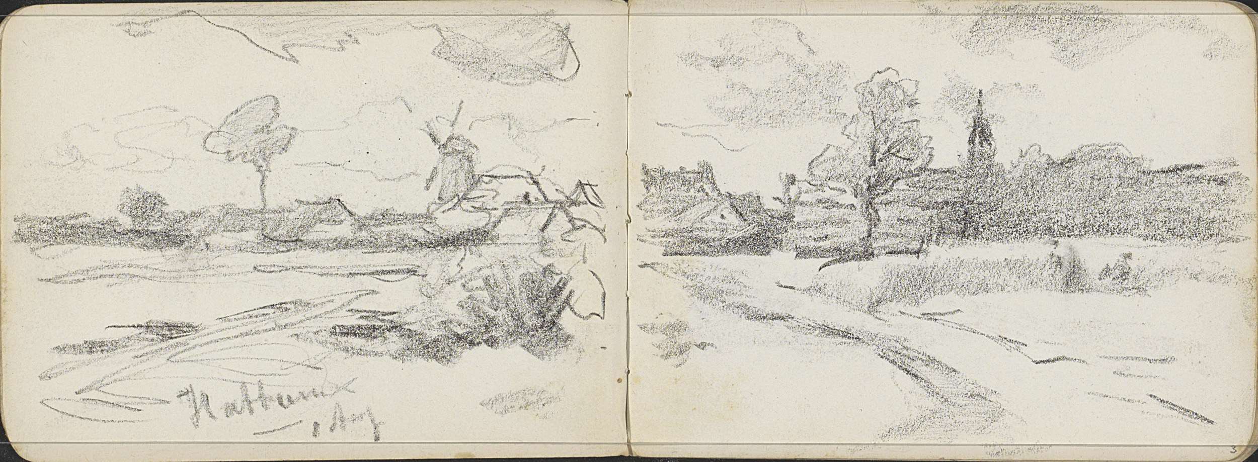 Huis en een molen in een landschap