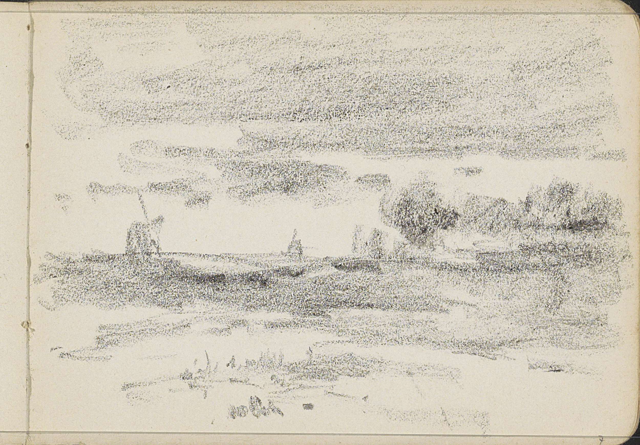Huis en molen in een landschap