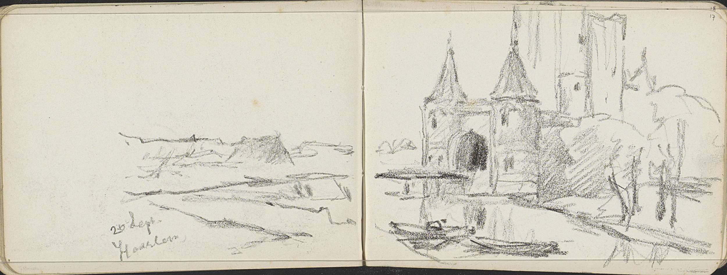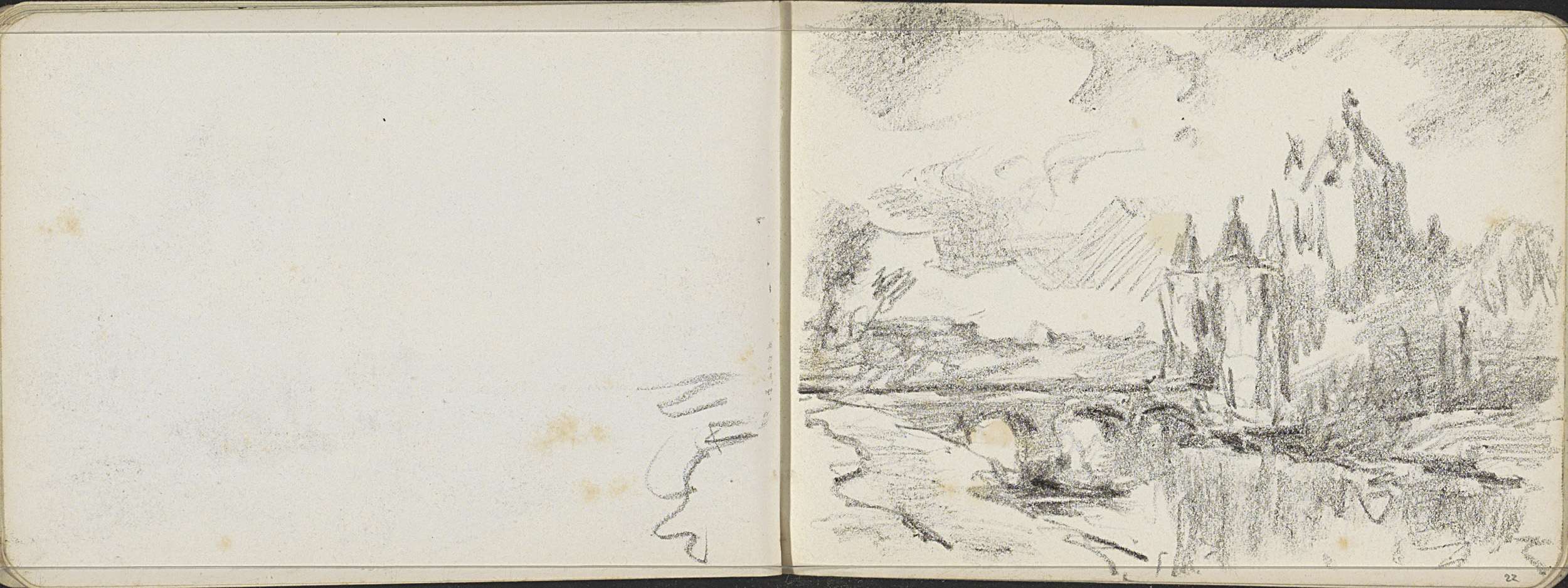 Landschap met een ophaalbrug en kerktoren