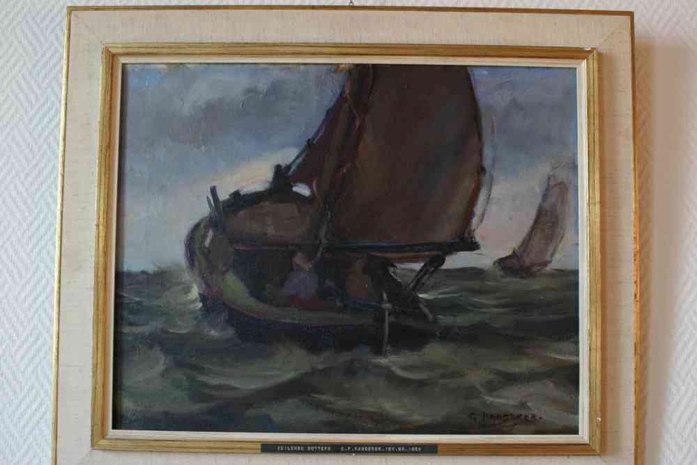 Olieverfschildering " Botters op zee" vervaardigd do...