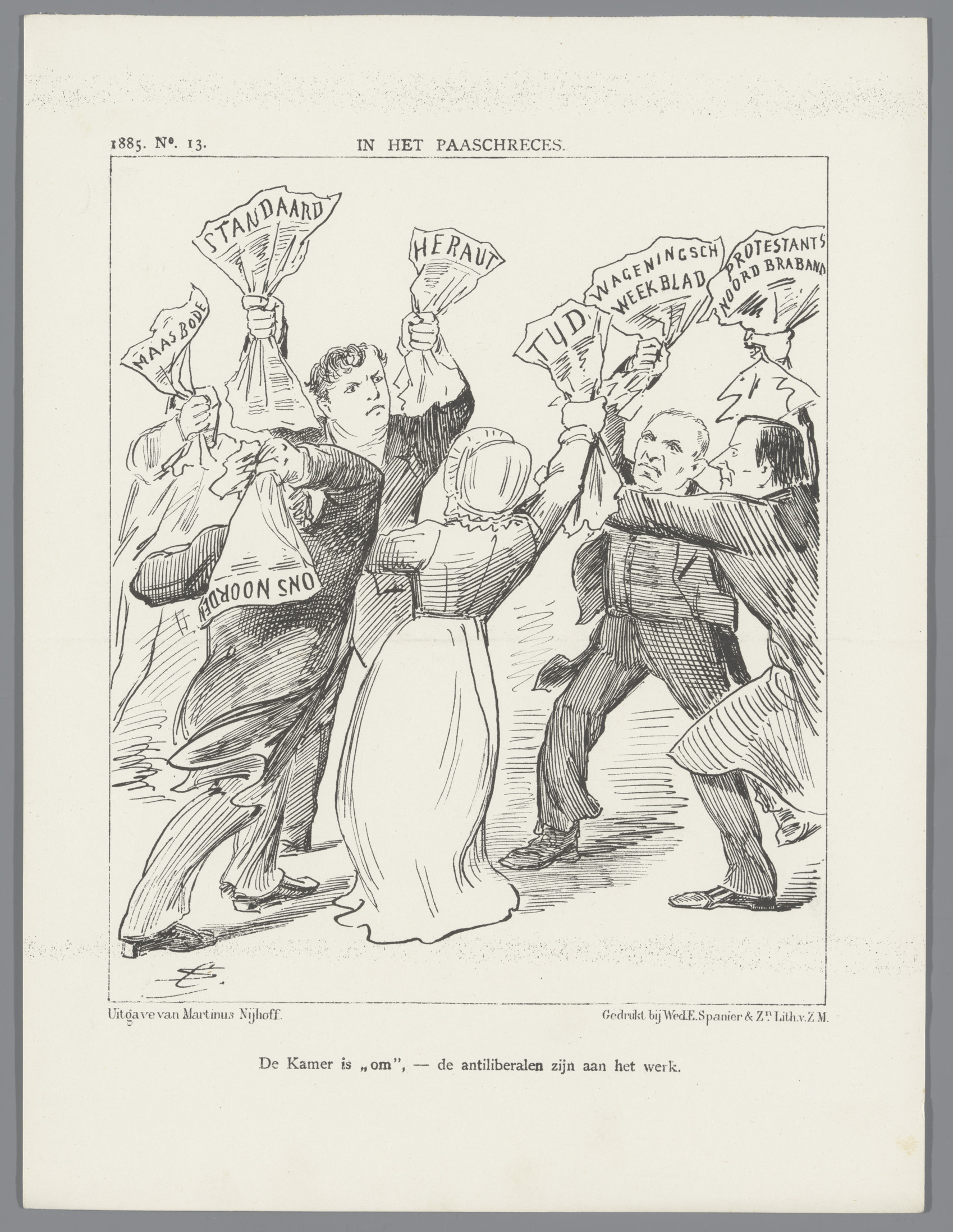 Spotprent op de kamerdebatten gehouden tijdes het re...