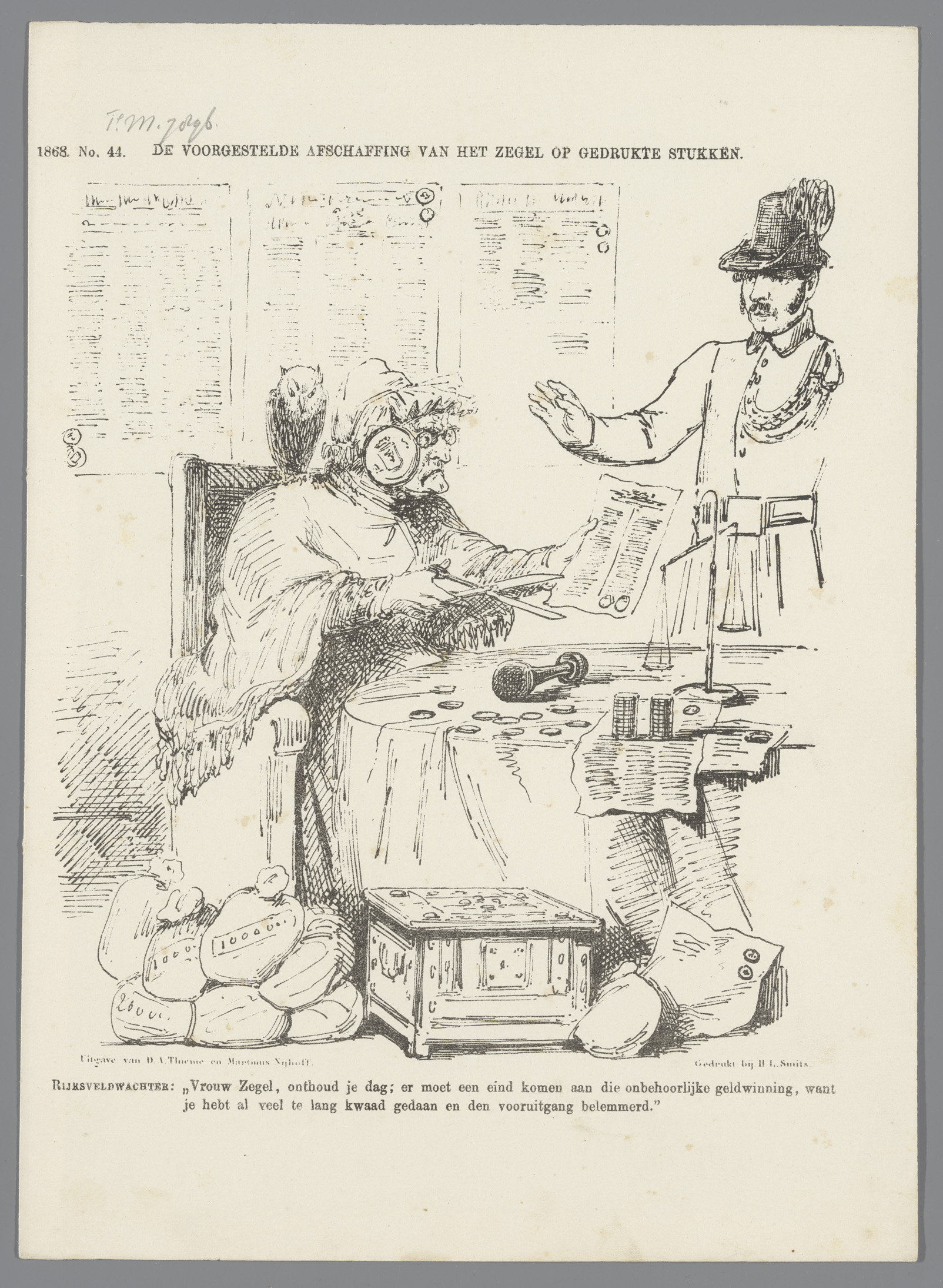 Spotprent op de afschaffing van het zegel op gedrukt...