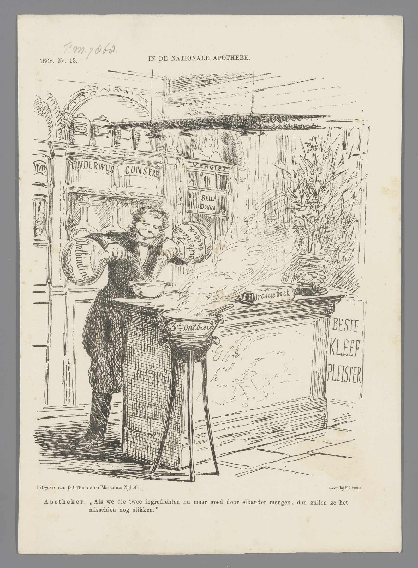 Spotprent op minister Van Zuylen als apotheker, 1868