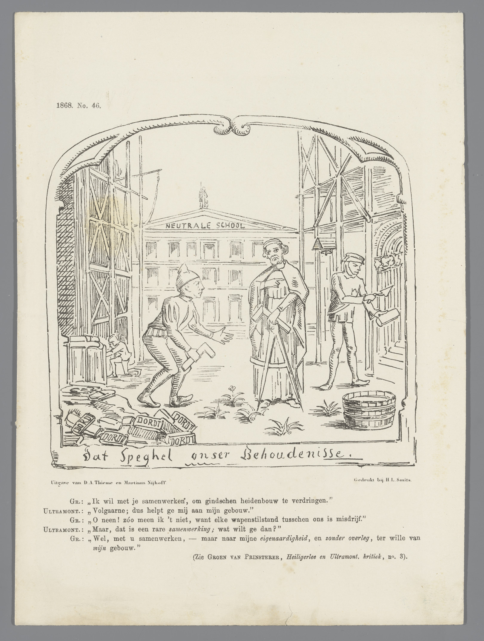 Spotprent op de anti-onderwijsbeweging, 1868