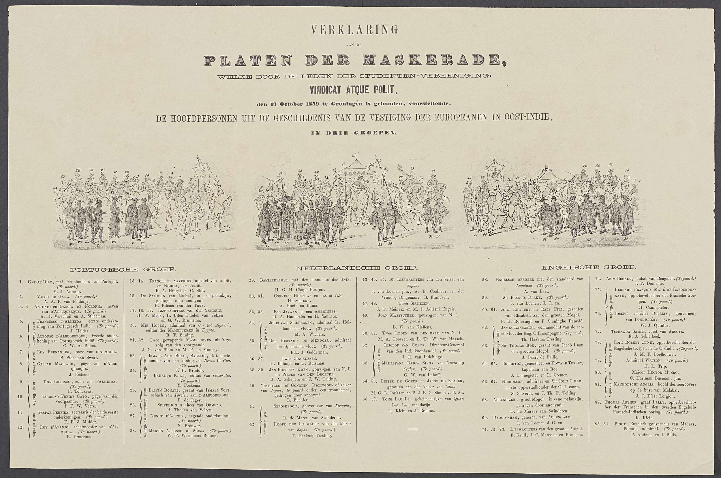Utrechtse maskerade van 1856, verklaring en legenda