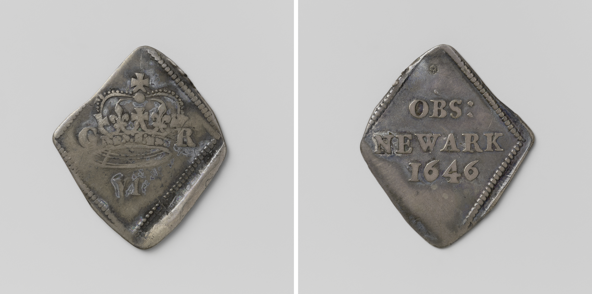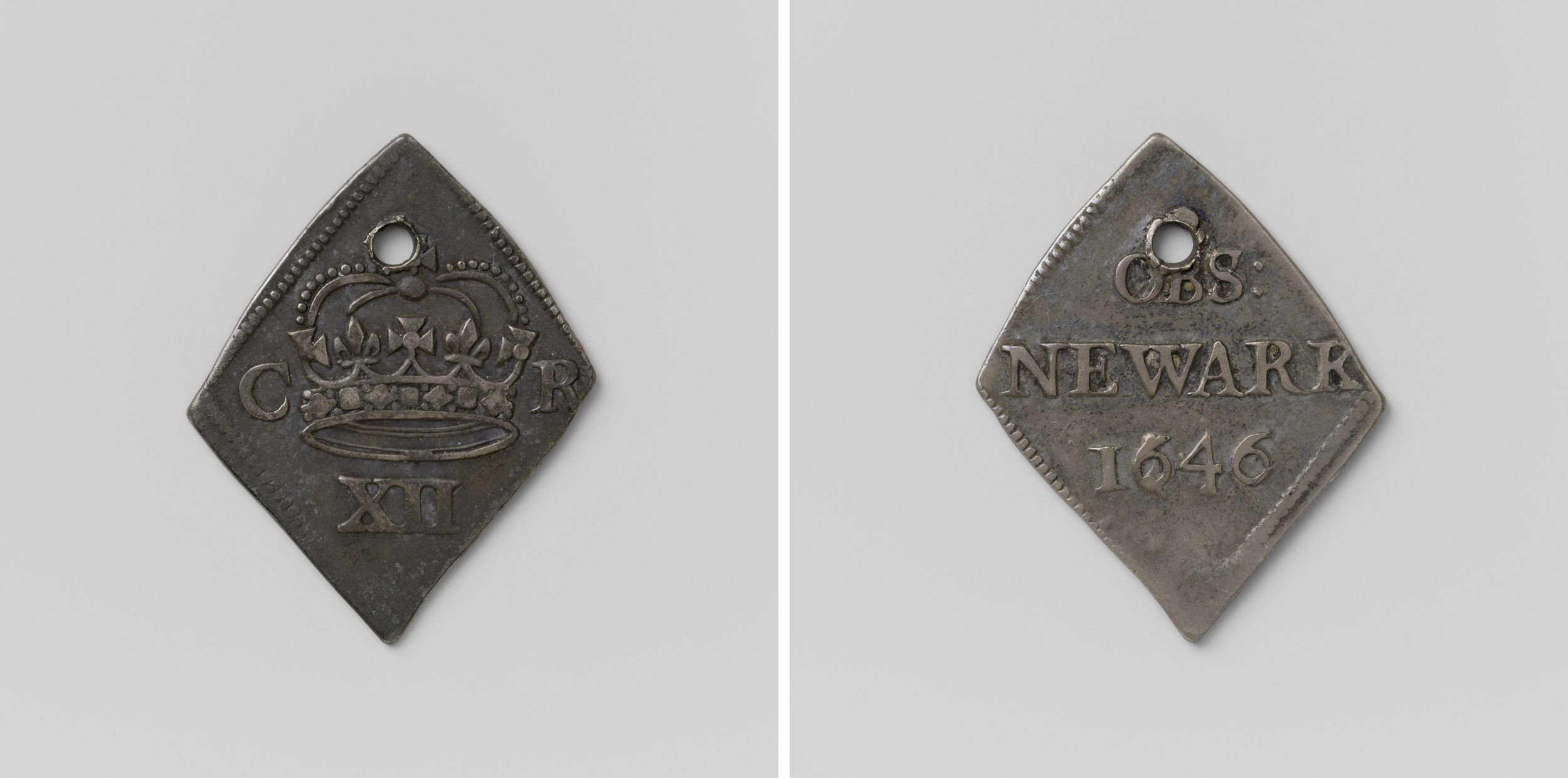 negen pence, noodmunt uit Newark-on-Trent, geslagen ...