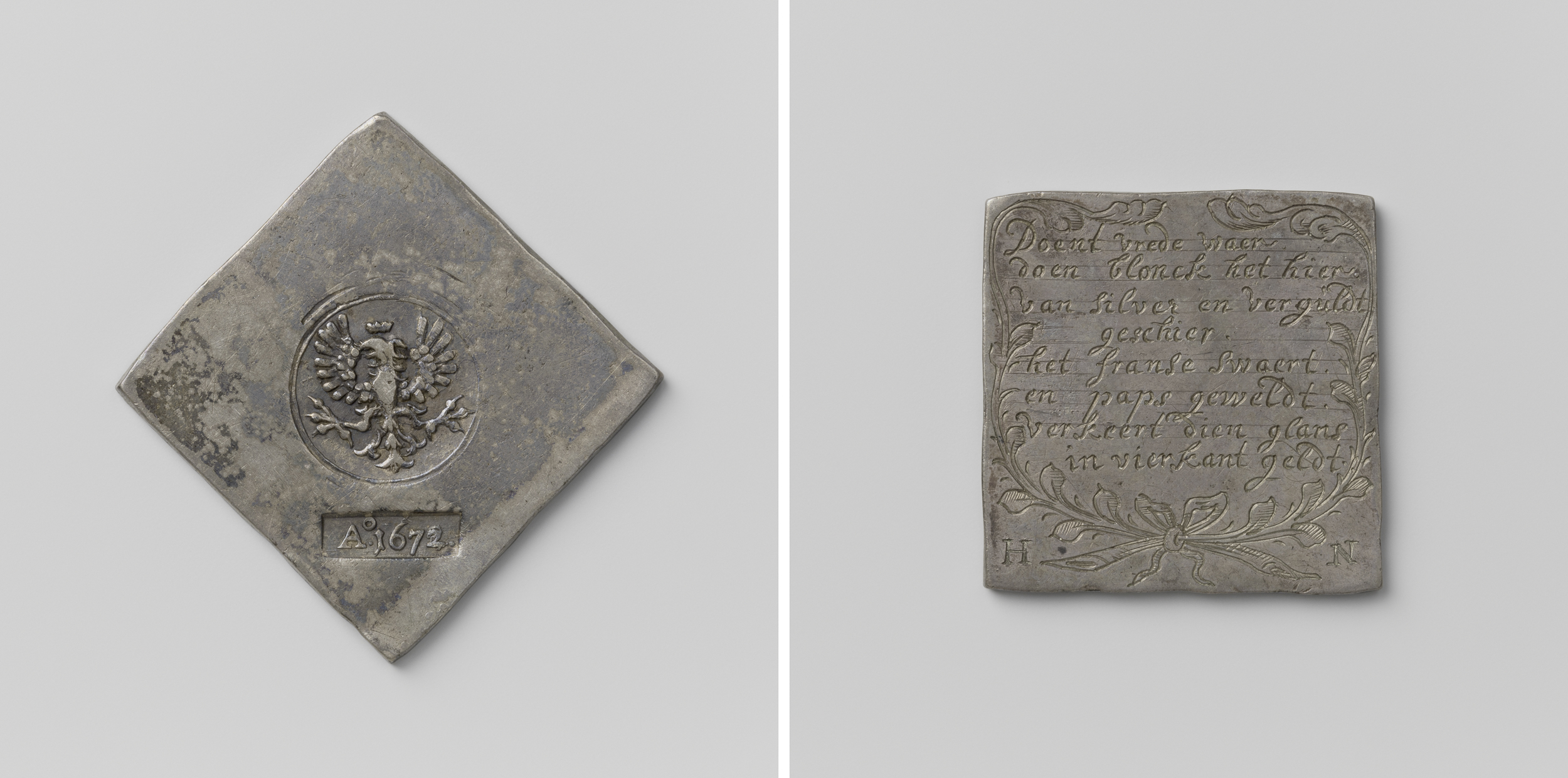 kwart daalder, noodmunt uit Deventer, vervaardigd ti...