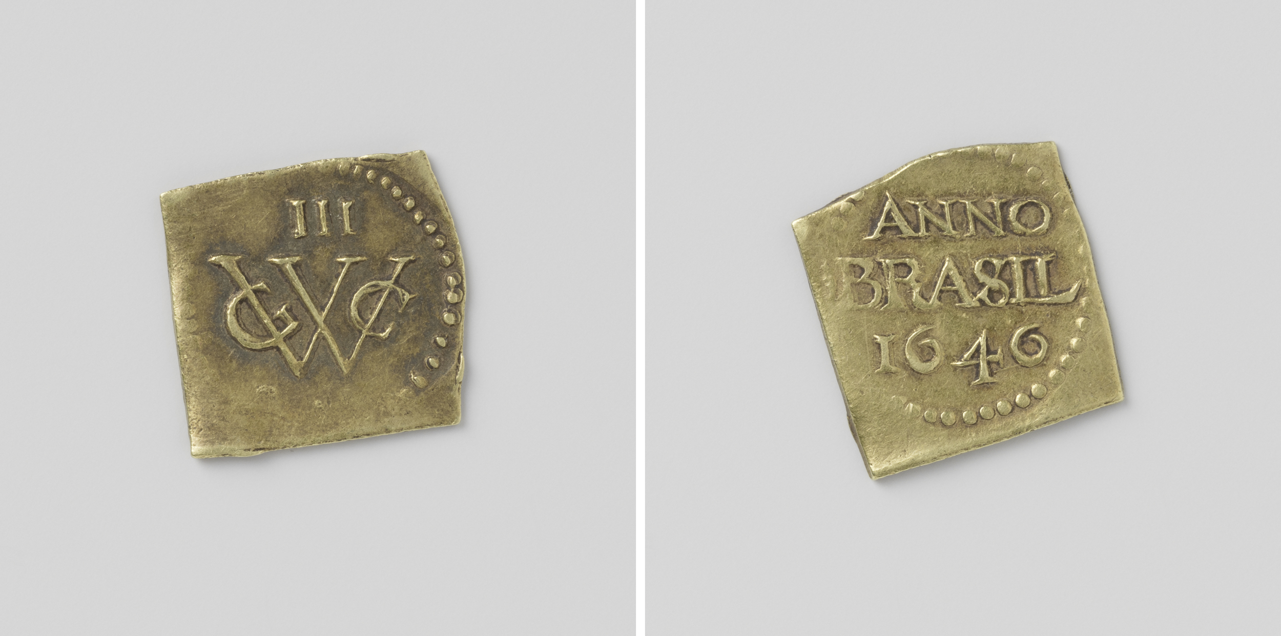 Gouden noodmunt van 3 gulden; door de WIC uitgegeven...