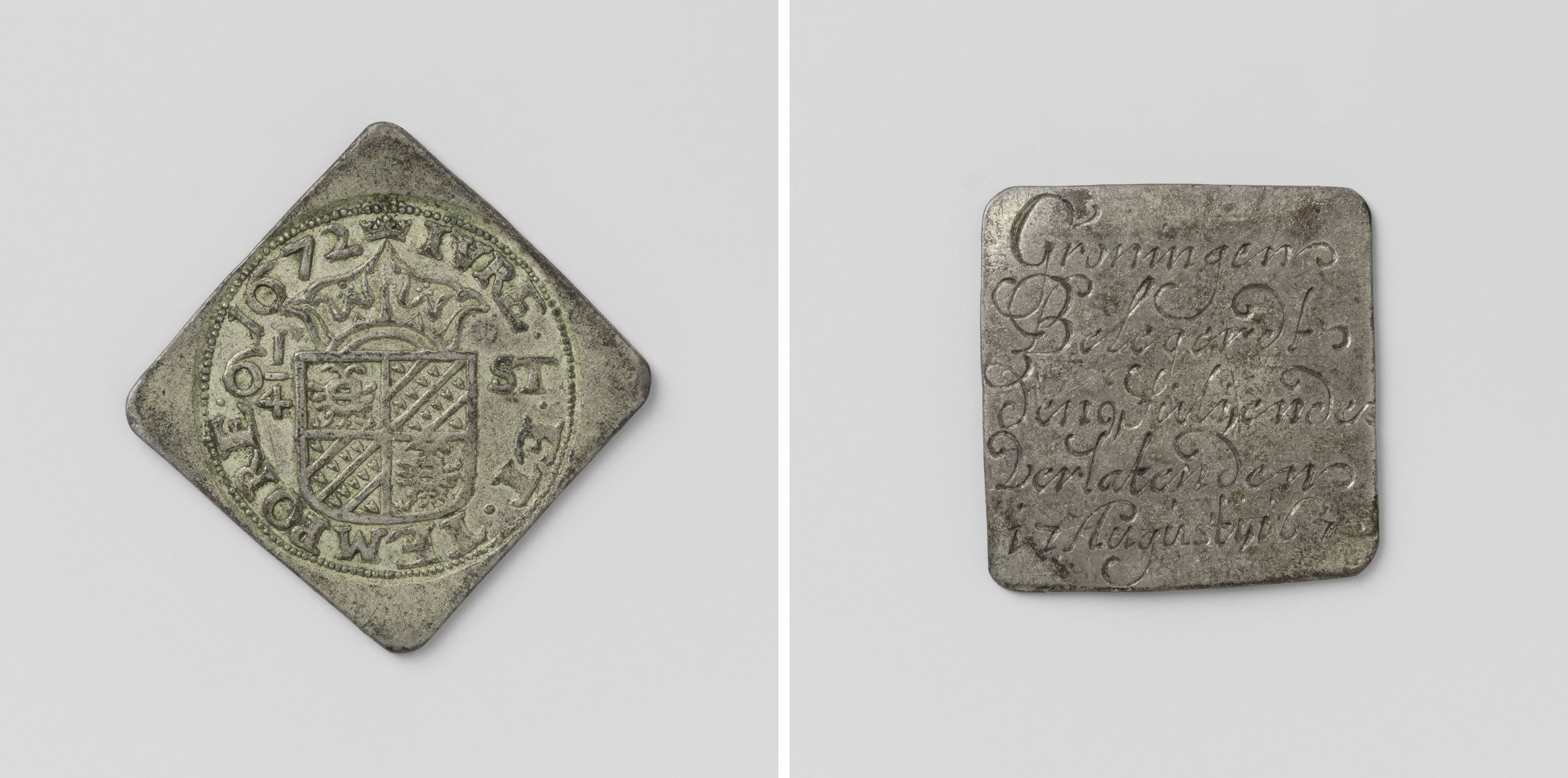 Kwart daalder, noodmunt uit Groningen, geslagen tijd...