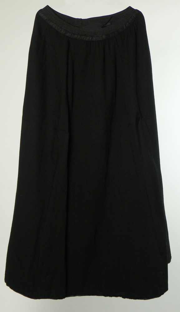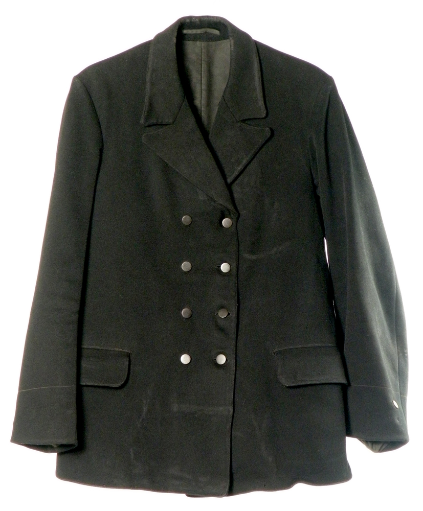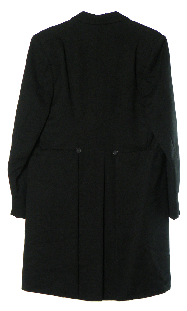 Lange overjas van zwart laken, gebruikt als uitvaartjas
