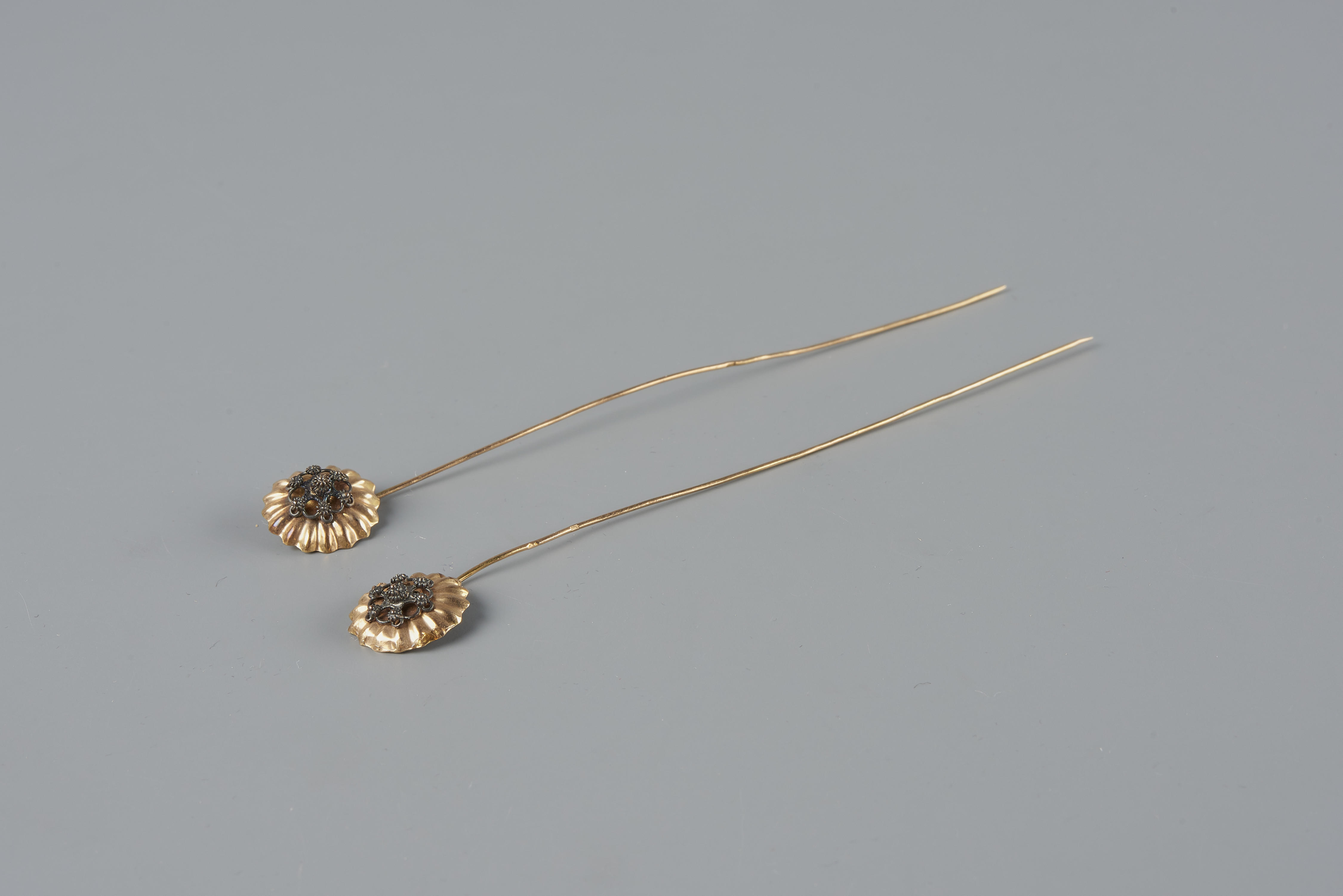 Paar verguld zilveren zijnaalden, Noord-Holland, 1873