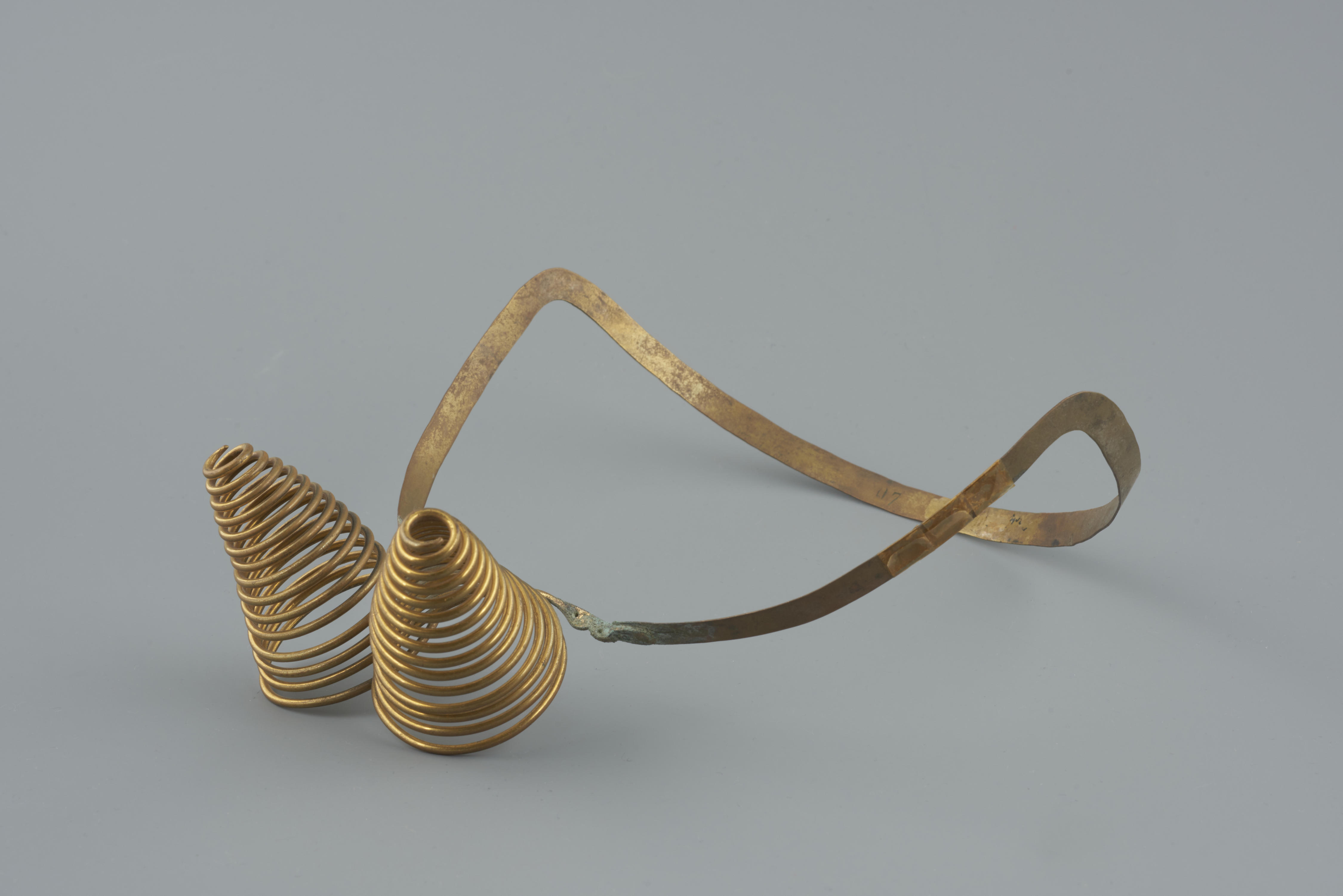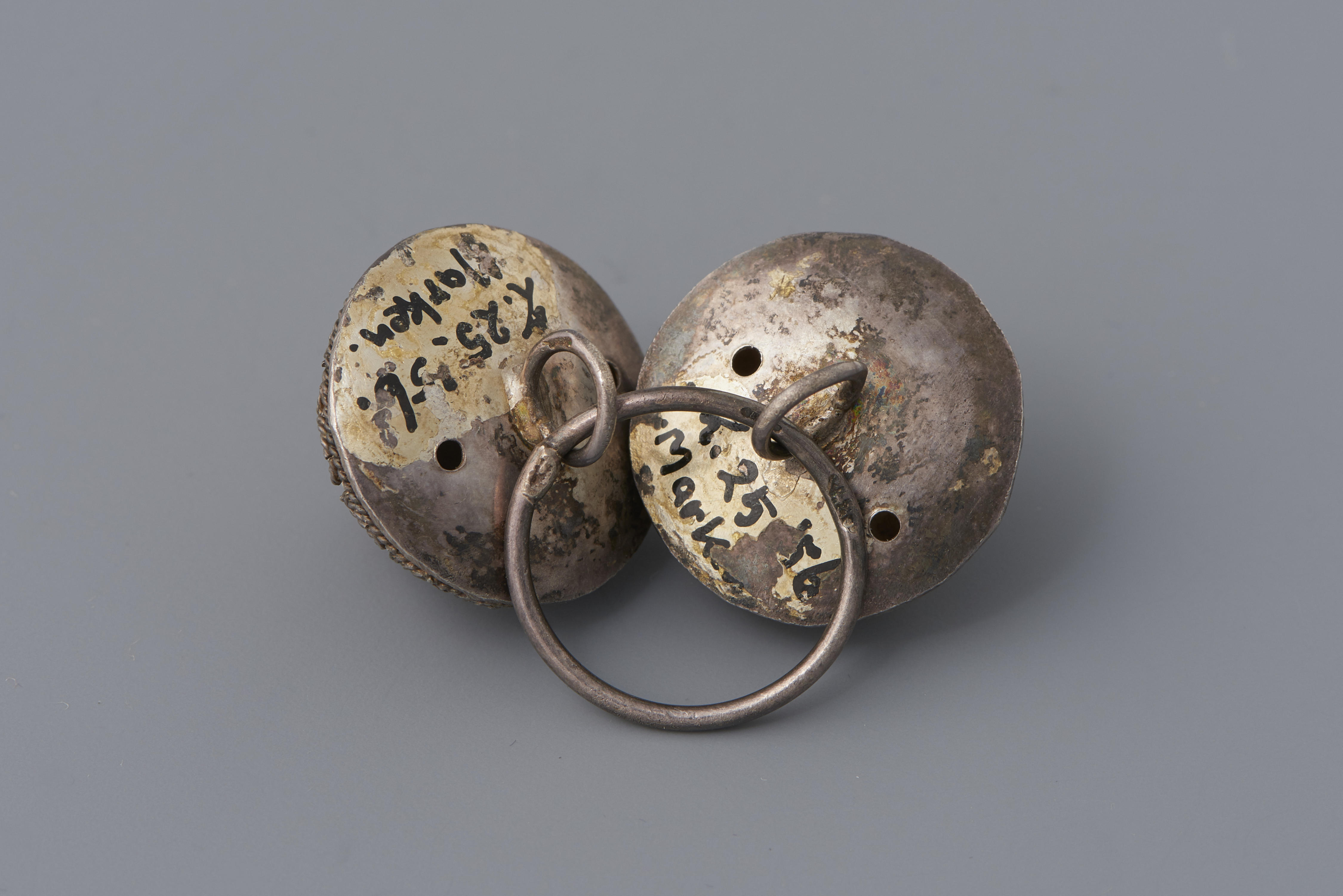 Zilveren oorijzer met koperen krullen, Noordwest-Vel...