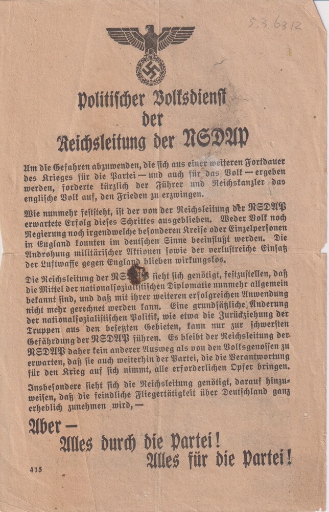 Pamflet: "Politischer Volksdienst der Reichsleitung ...