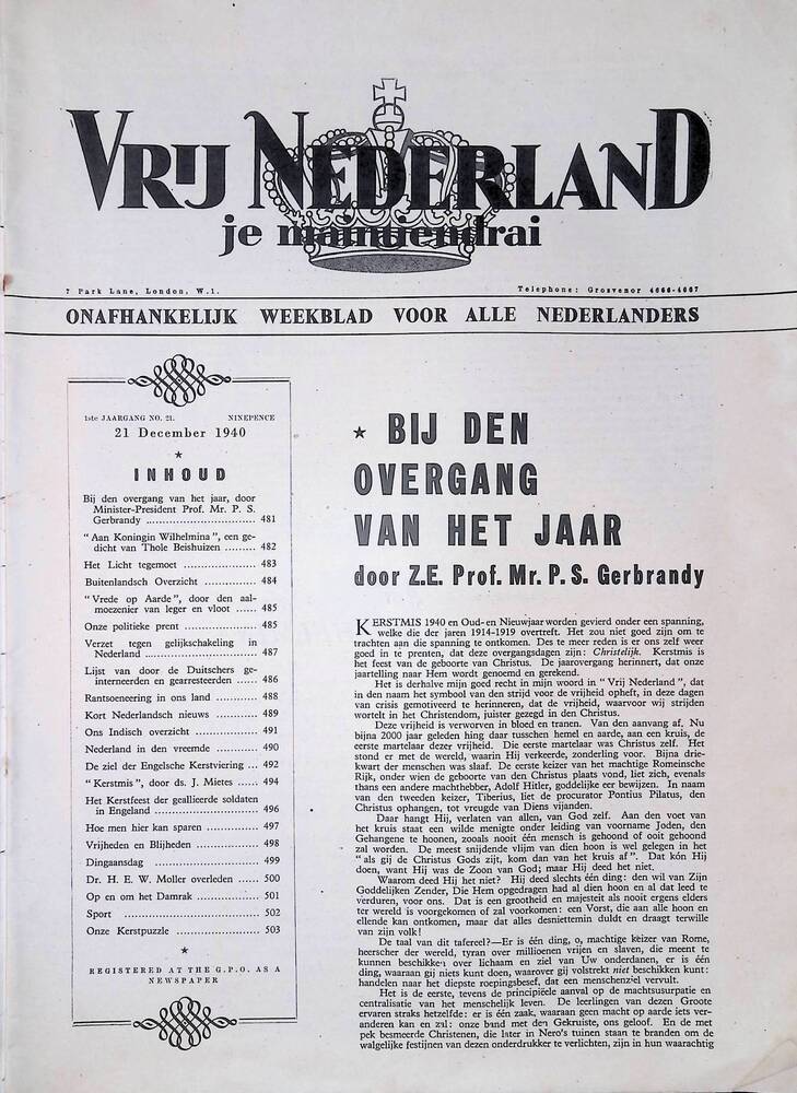 Vrij Nederland, Je Maintiendrai, kerstnummer, 1940