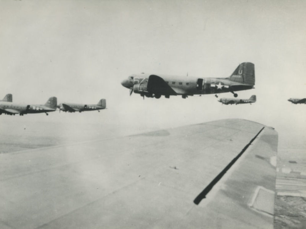 Foto van Amerikaanse C-47 Dakota's in de lucht op 17...