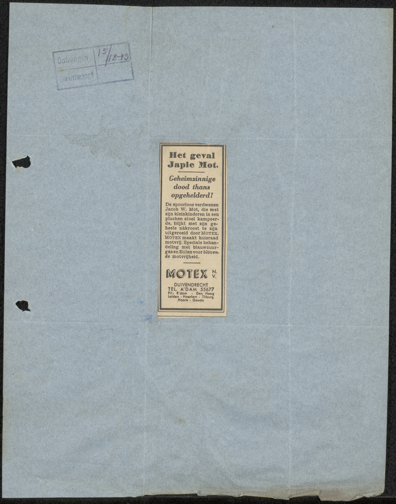 Vel met opgeplakte advertentie: "Werkt mede tot een ...