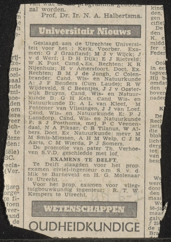 Een aantal krantenknipsels uit de oorlogsperiode 194...