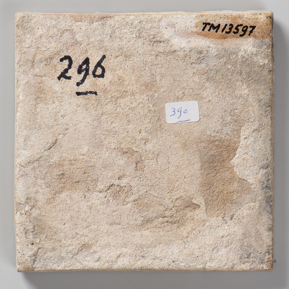 tegel van aardewerk met tinglazuur, voorstellende: r...