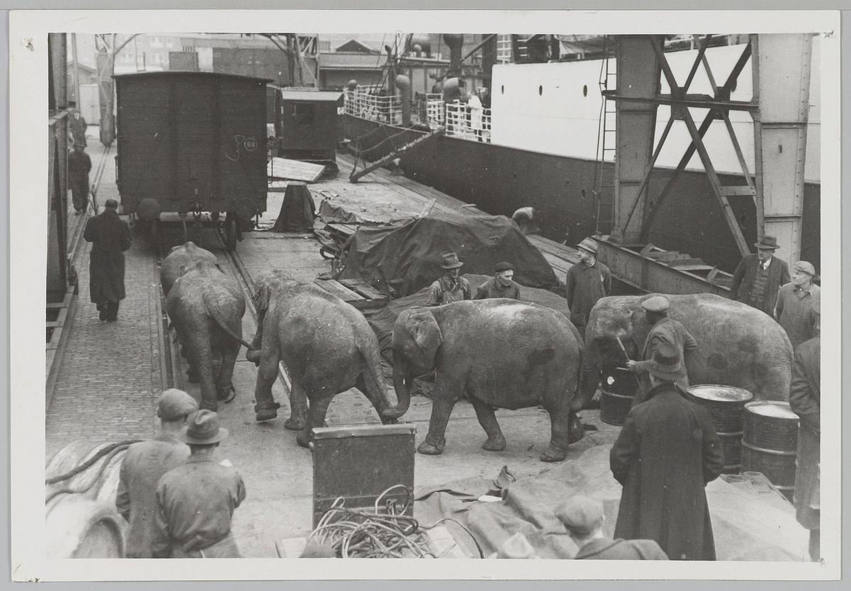 Circus Strassburger. Aankomst Chipperfield-olifantje...