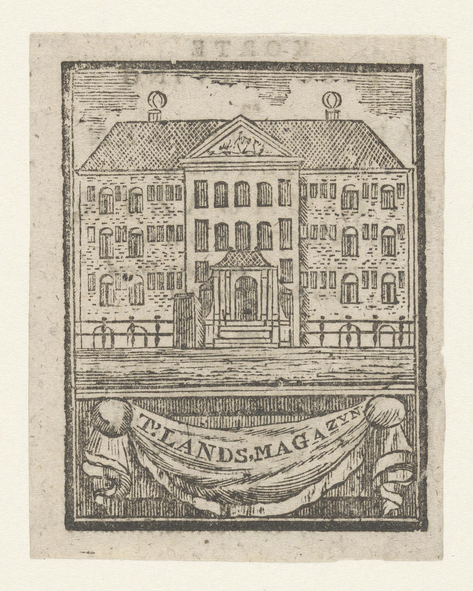 Afbeelding van 's Lands Zeemagazijn na de brand in 1791