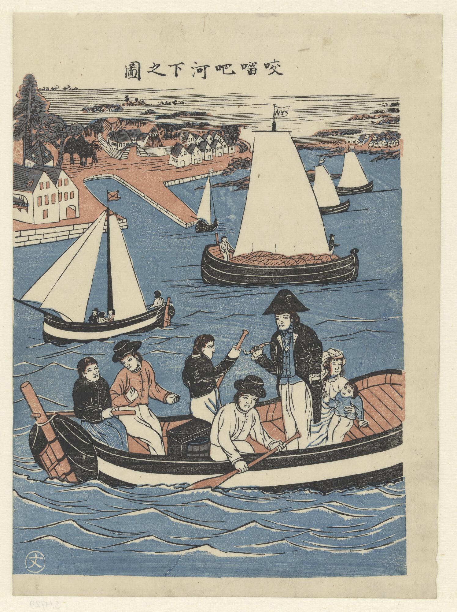 Nagasaki-prent: Hollands gezelschap in een scheepje