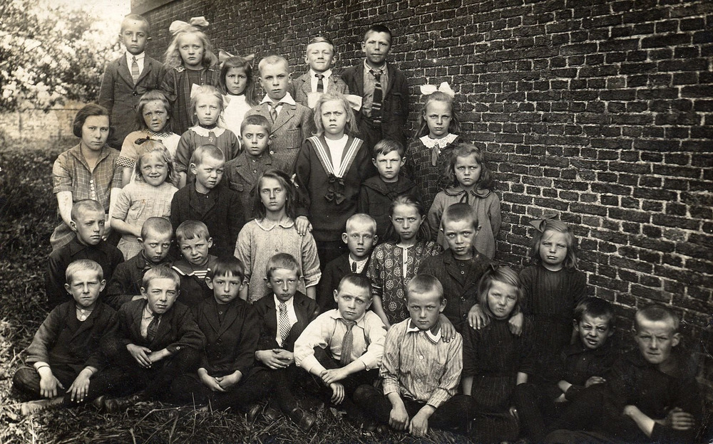 Schoolfoto: openbare lagere school. Achterste rij vl...