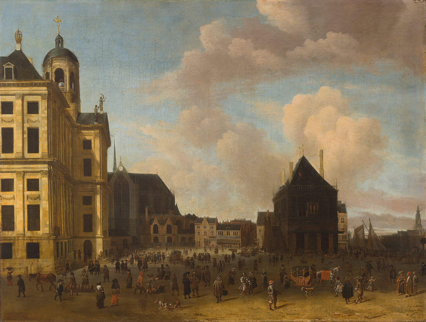 De Dam naar het noorden gezien met het Stadhuis, de ...