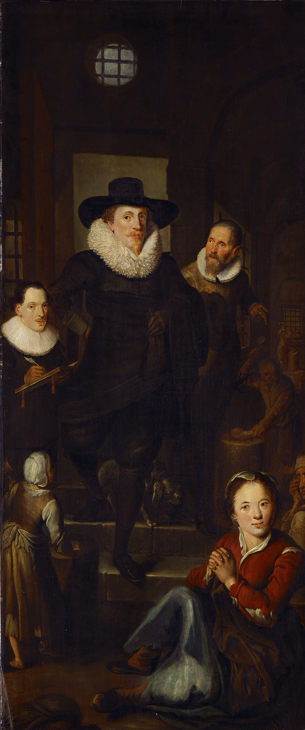Een aalmoezenier vergezeld door de hoofdprovoost bre...