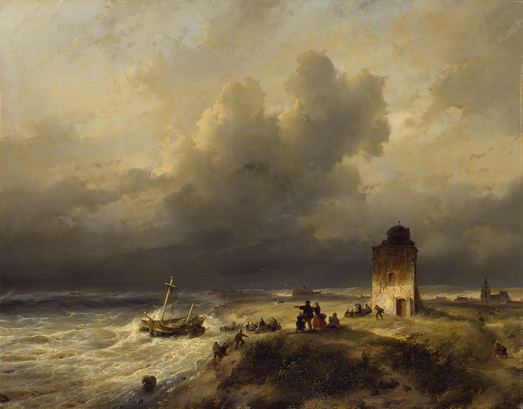 "Het strand bij Scheveningen bij regenachtig weder"