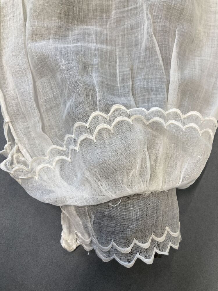 Ondermouwen van wit neteldoek gerimpeld aan manchett...