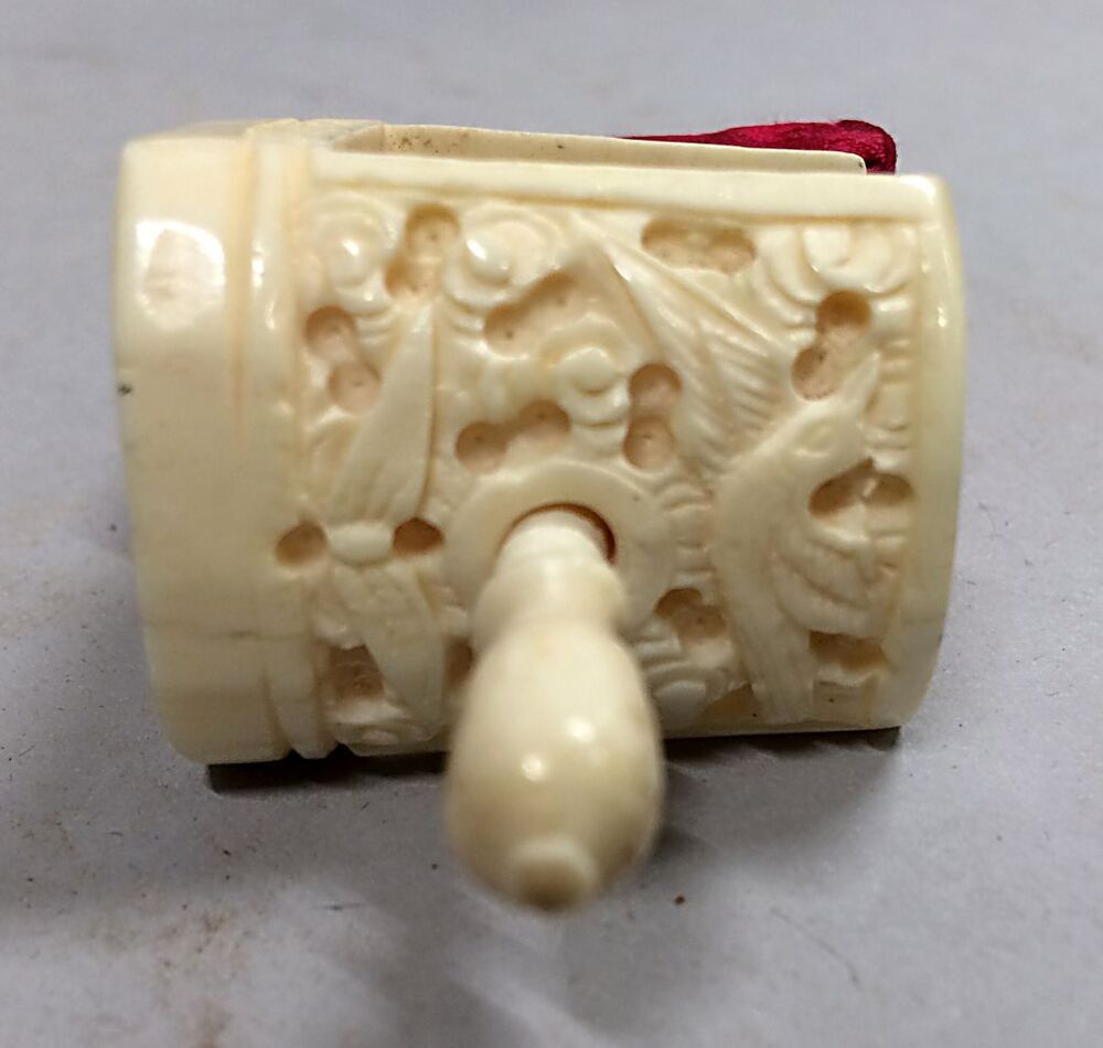 Tonvormig doosje, onderdeel van inhoud naaidoos van ...