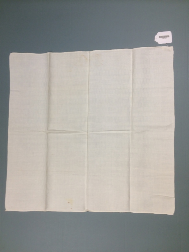 Zakdoek van wit katoenen poplin omgehaakt met boogje...