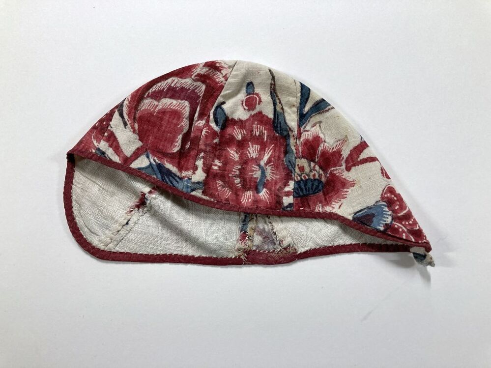 Sitsen jongensmuts, met grof bloempatroon op witte g...