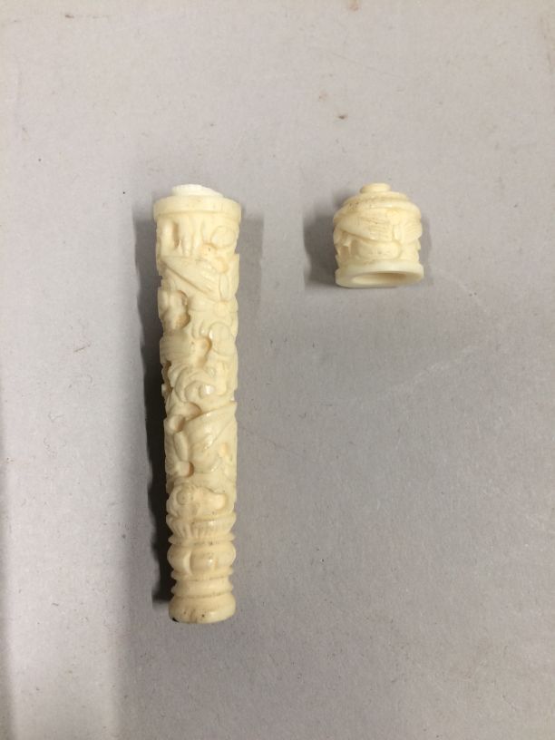Benen naaldenkoker, onderdeel van inhoud naaidoos va...