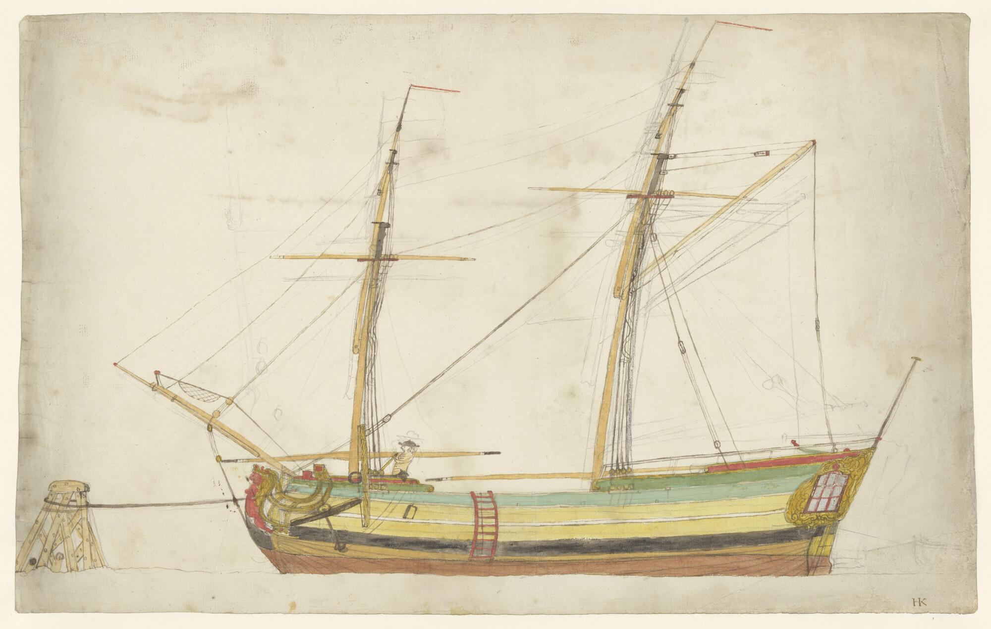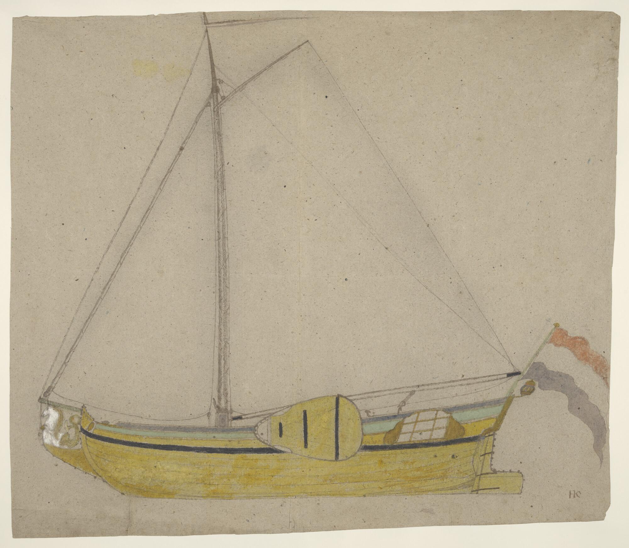 Schets van een klein jacht, zijaanzicht