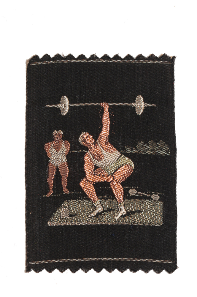 Zijdje 'Gewichtheffer' textiel, uitgegeven door Kiaz...