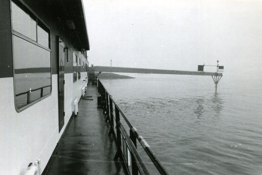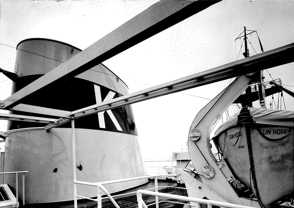 Zwart-wit foto van een deel van een schip genaamd El...