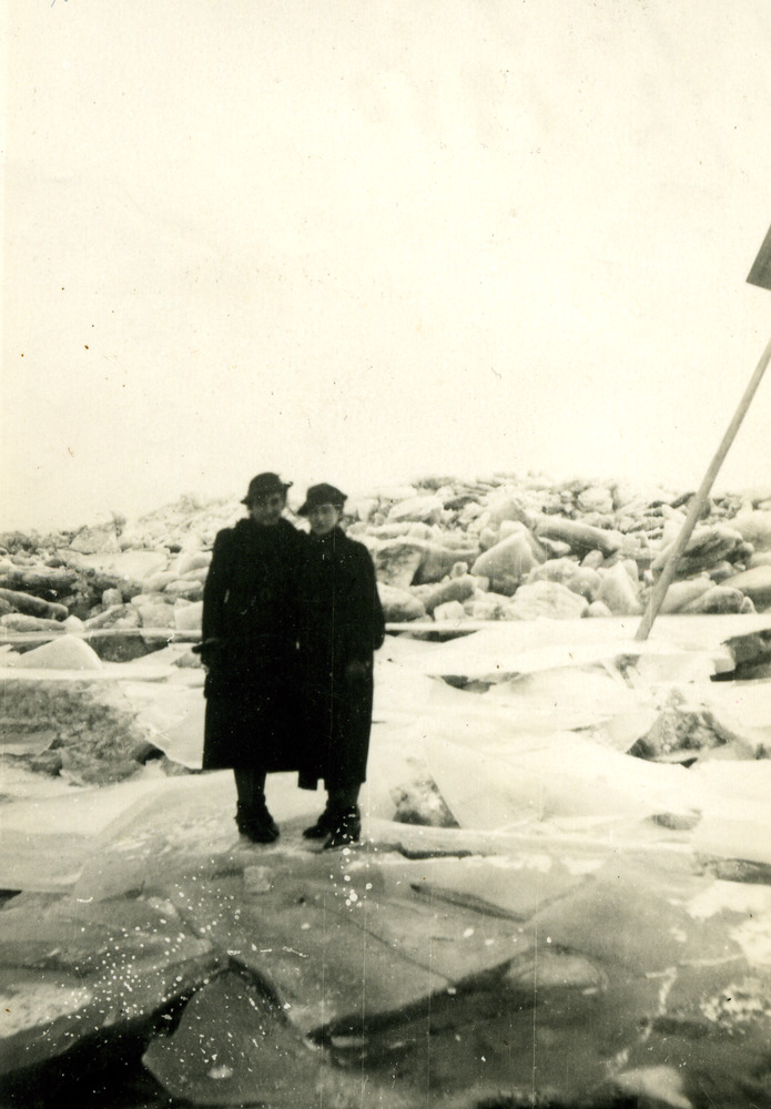 Zwart-wit foto van ijsgang op de Rijn bij Herwen op ...