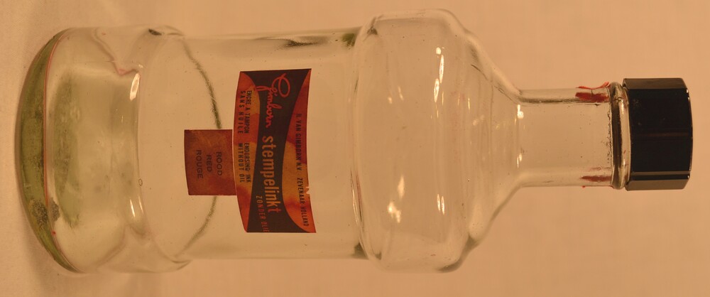 Fles rechthoekig van glas met inkt door H. van Gimbo...