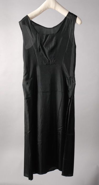 Zwarte crêpe japon, gegarneerd met kralen en fluwele...