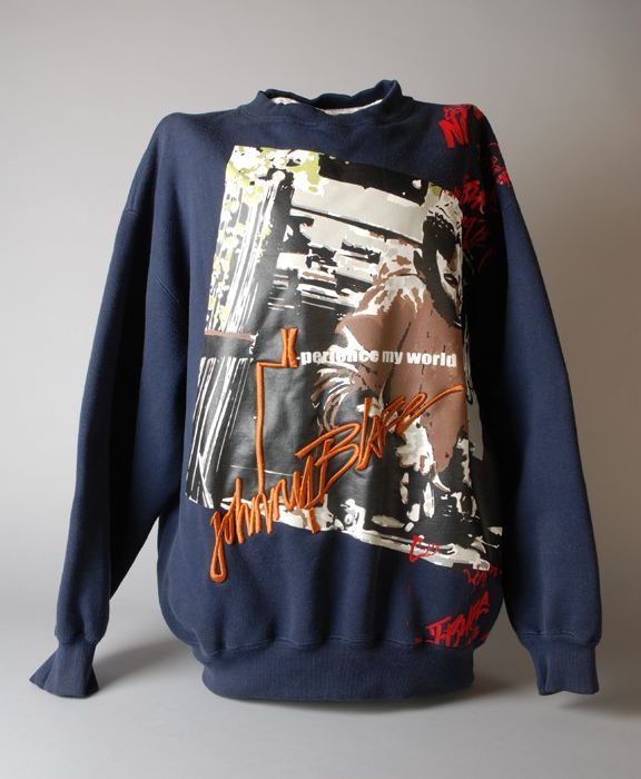 Oversized, wit shirt, maat 6, lange mouwen, opdruk "...