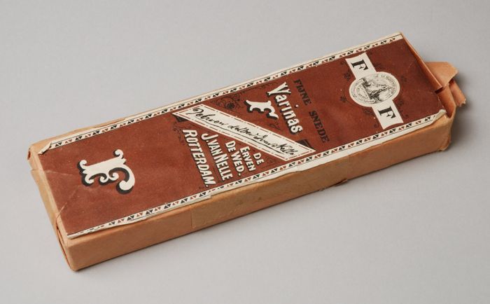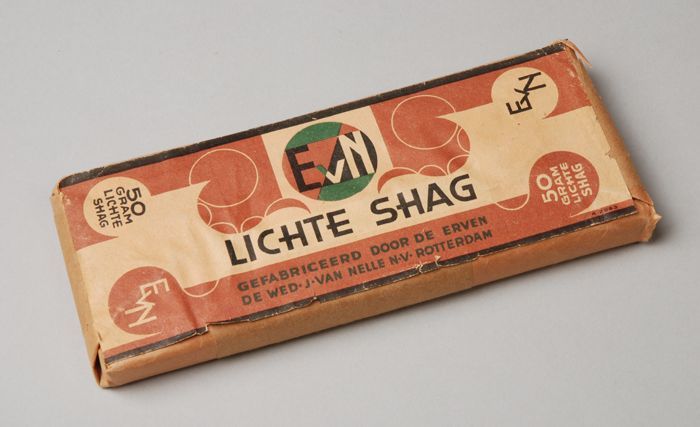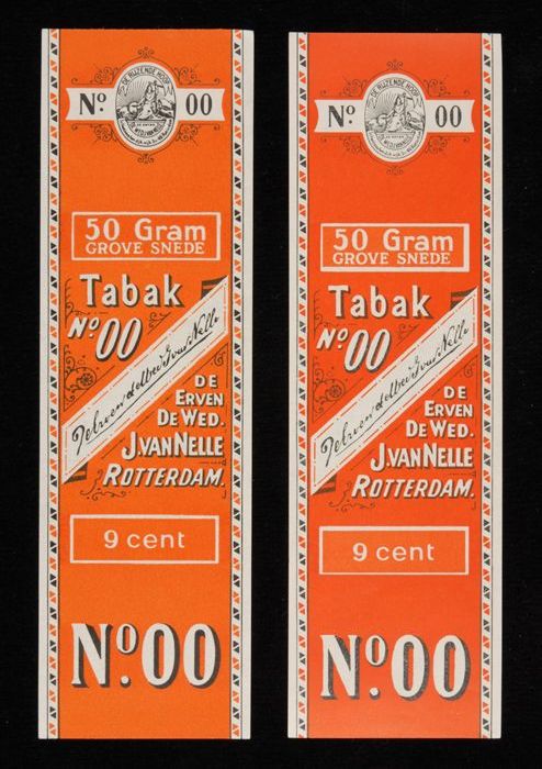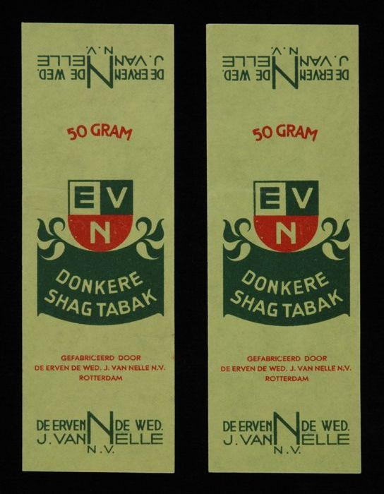 Blauw, papieren label VAN NELLE DONKERE SHAGTABAK, 1...